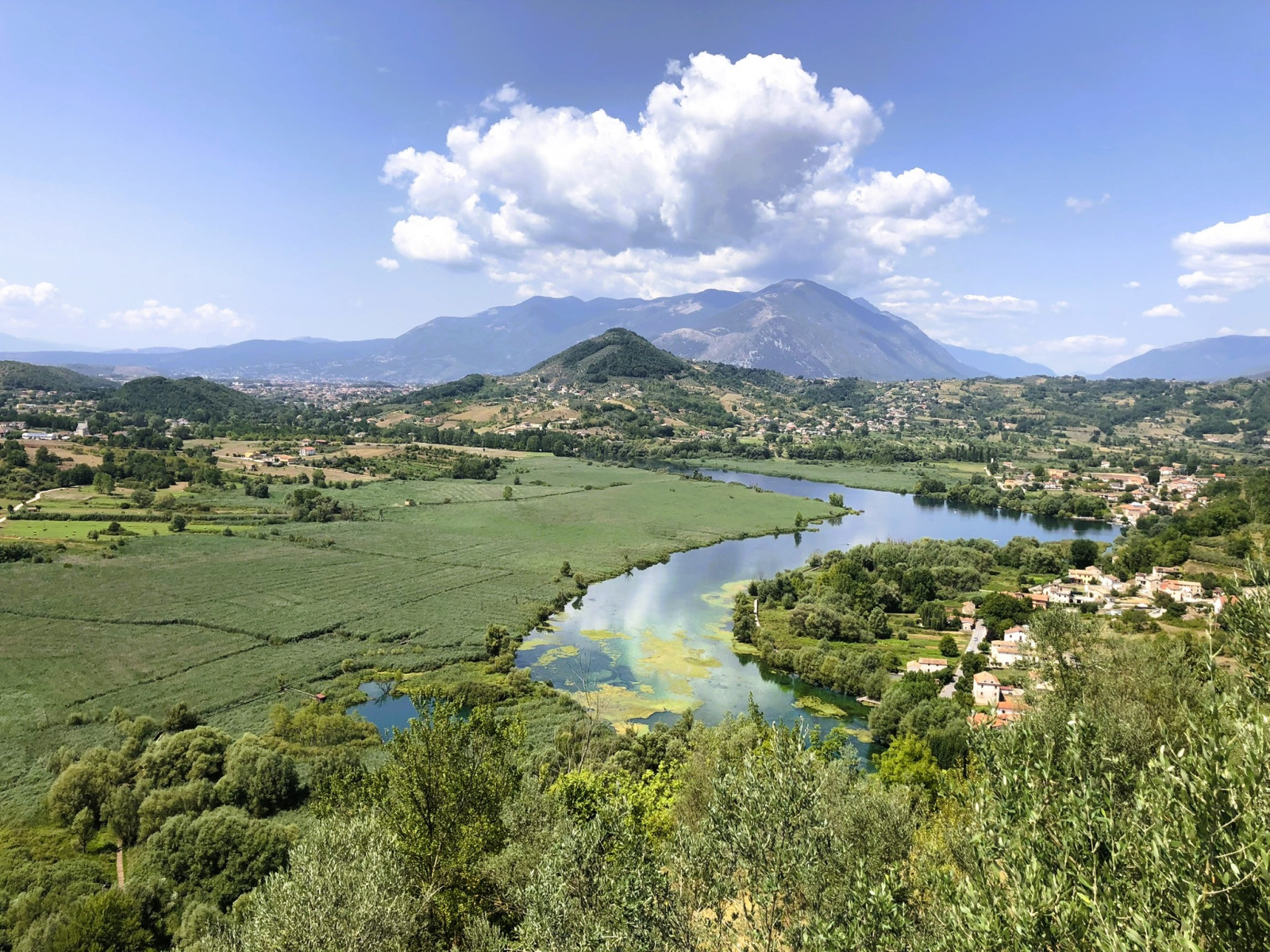 Lago di Posta Fibreno is located about 120 kilometers southeast of Rome, near the town of Posta Fibreno. You can park along the lake. Press P on the map for directions to a parking spot. From the parking you can explore the area and the boardwalk trails on foot. The total length of the walking route shown on the map is about 3 km one way.