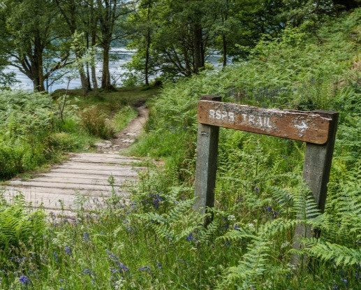 RSPB reserve at Garrison Farm between Loch Lomond and Loch Arklet. With visitor centre, car park, upland trail and lowland trail.
