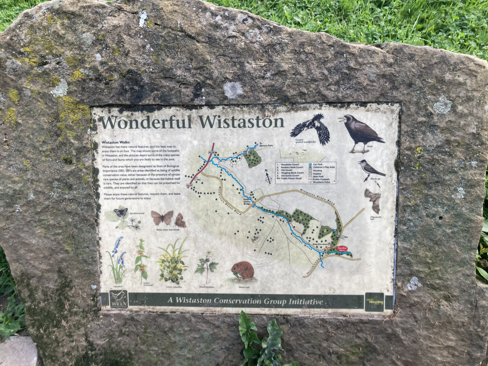 Previously parkland belonging to Wistaston Hall, now donated for public use. A mix of habitats including oak woodland, grassy fields, and a shallow stream.