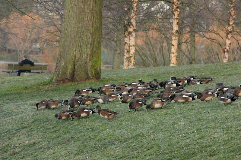 The lake itself is beautiful, and provides a home to various ducks, cormorants, grebes, herons, and many small birds. Quite a treat to find them all in the midst of a city. The relatively flat paved path around the lake is 2.8 miles in length, and there is much natural growth along the lake shore. There is als a small island, Duck Island, which is a bird sanctuary and is closed to human access. Common finds in the park are Great Blue Heron, Gadwall, American Wigeon, Pied-billed Grebe, American Coot, Hooded Merganser, Common Merganser, and of course Mallard.