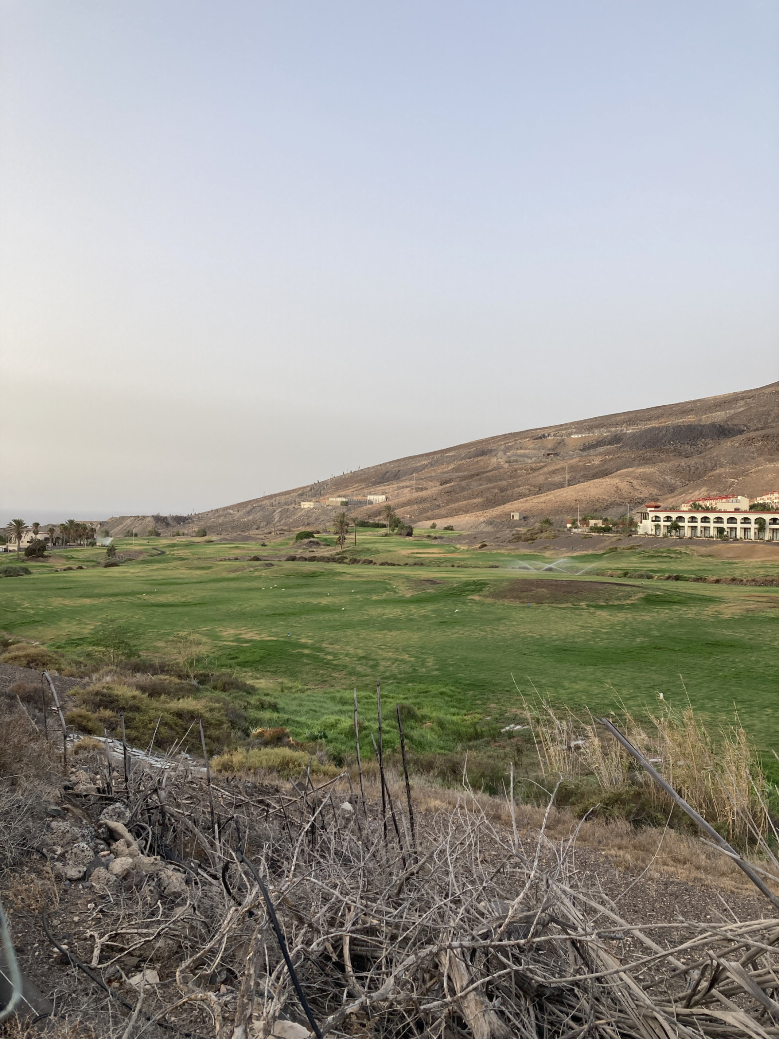 Starting at the roundabout in the SW corner of the Jandia golf course, walking along the bushes and the skip on the other side, species like Ερημοπύρρουλας, (Ευρωπαϊκή) Πετροτουρλίδα, Γελαδάρης and Φοινικοτρύγονο can be seen. Follow the road until it splits, take the road up north towards the pond for species like Καστανόπαπια and Σταχτοσουσουράδα. After the pond, follow the trail on the eastern side of the valley (warning for dogs at the western road). Along the track species like Διπλοκεφαλάς, Τσαλαπετεινός, Canary Islands Chiffchaff, Fuerteventura Stonechat, Ερημοπύρρουλας and African Blue Tit can be found.