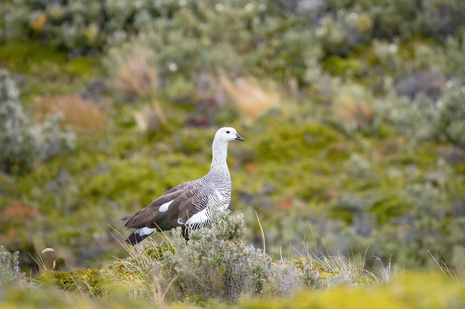 Tierra del Fuego National Park extends for 60 km north of the Beagle Channel, along the border with Chile. The park has an area of approximately 630 km² and includes parts of Lake Fagnano and Roca at Lapataia Bay on the south coast. The park contains waterfalls, forests, mountains and glaciers. Over 100 bird species have been recorded in the national park. Birds you can observe include Kelp Goose, Upland Goose, Chimango Caracara, Andean Condor, Blackish Oystercatcher, Great Grebe, Magellanic Woodpecker, Austral Parakeet, Fire-eyed Diucon, Patagonian Rufous-collared Sparrow, Austral Thrush, Patagonian Sierra-Finch and several species of cormorants, ducks and gulls.