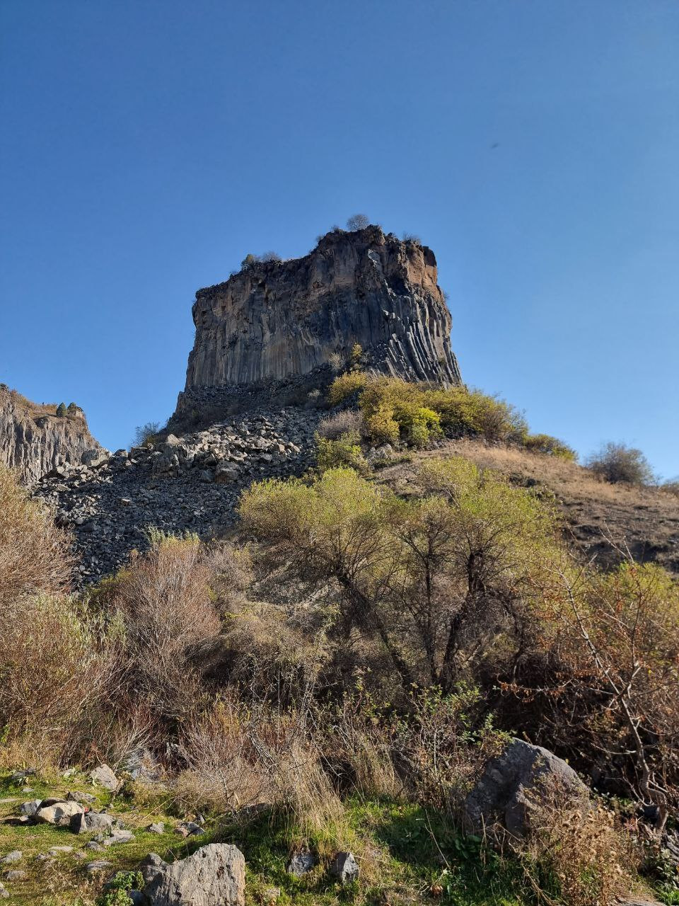 On the map, I suggest a walking route from the Symphony of Stones to Garni Temple (about 3 km one way). However, it is also possible to travel by car or taxi between the locations and avoid the steep climb.