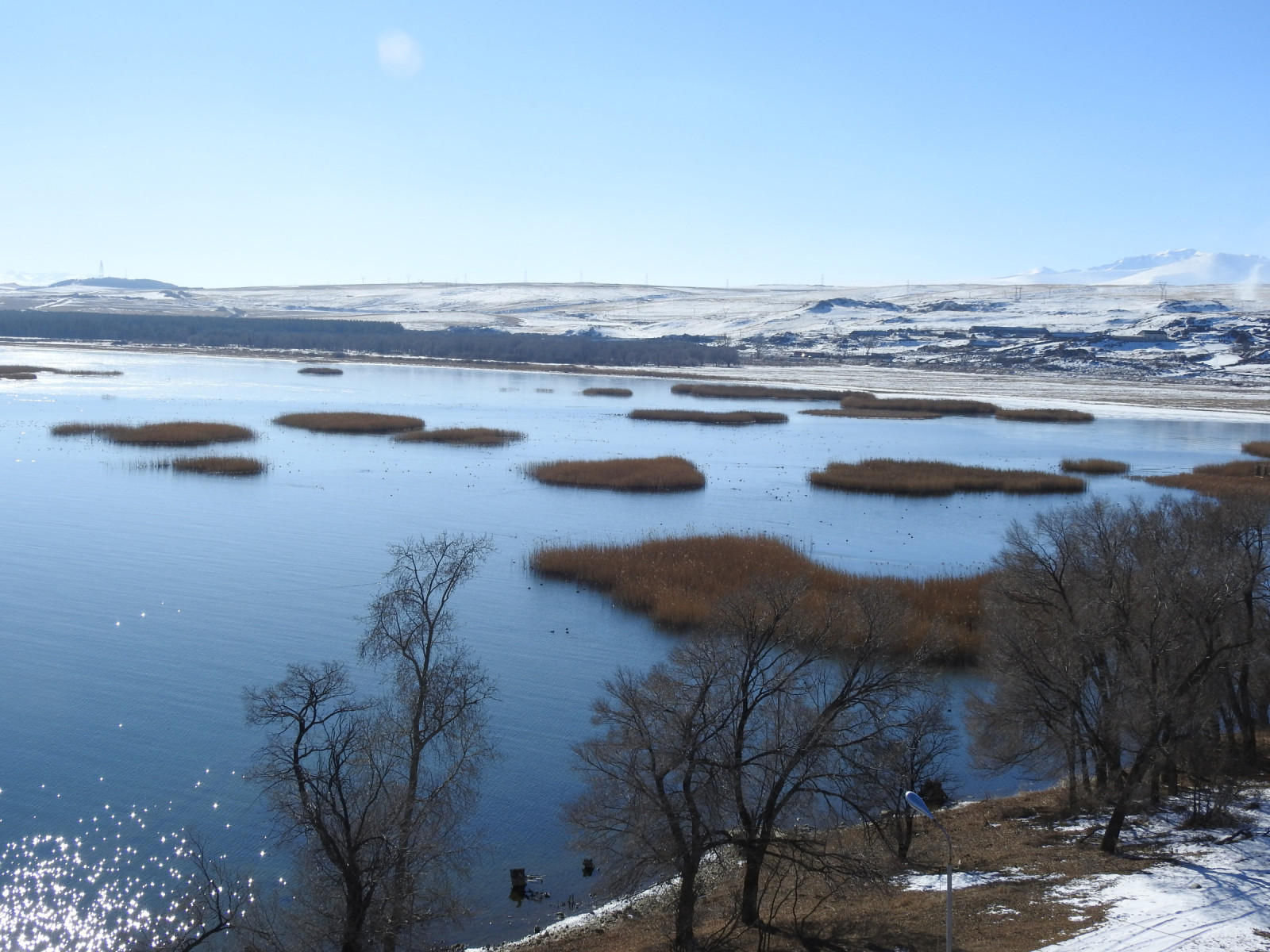 Hayravank Gulf is a good combination of artificial forest, grassland, reed islands and a rocky cliff on the northern side. You can find dry steppe species as Northern Wheatear and Eurasian Hoopoe. Forest birds like tits, Common Chaffinch, Common Wood Pigeon, and a lot of water birds (grebes and ducks) on the lake. Reed islands and the drowned farm are home for herons, Eurasian Moorhen and other species. On the long flat shore you can encounter waders like Common Sandpiper, Wood Sandpiper and Green Sandpiper. At this spot you can also observe birds of prey such as Western Marsh Harrier, Common Buzzard and Eurasian Goshawk.