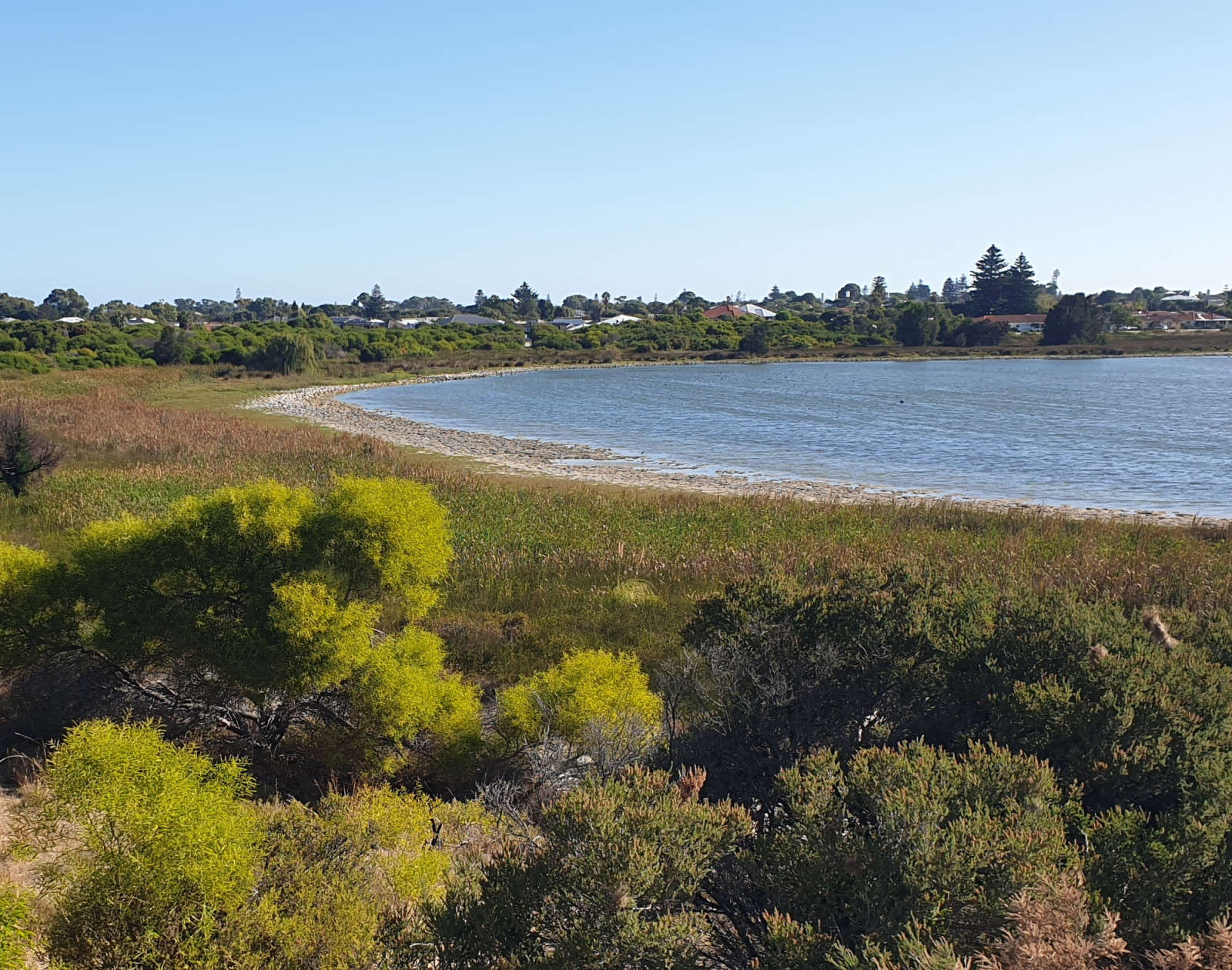 Lake Richmond lies in the city of Rockinham. The lake can be accessed at multiple places around its perimeter but, surprisingly, a dedicated parking area has not been provided. However, street parking is available adjacent to the viewing platform. Click on the P for directions. Note that the western part of this walk, next to a main road, is not particularly interesting and can be omitted if desired. The circular walk around the lake is about 3 km.
