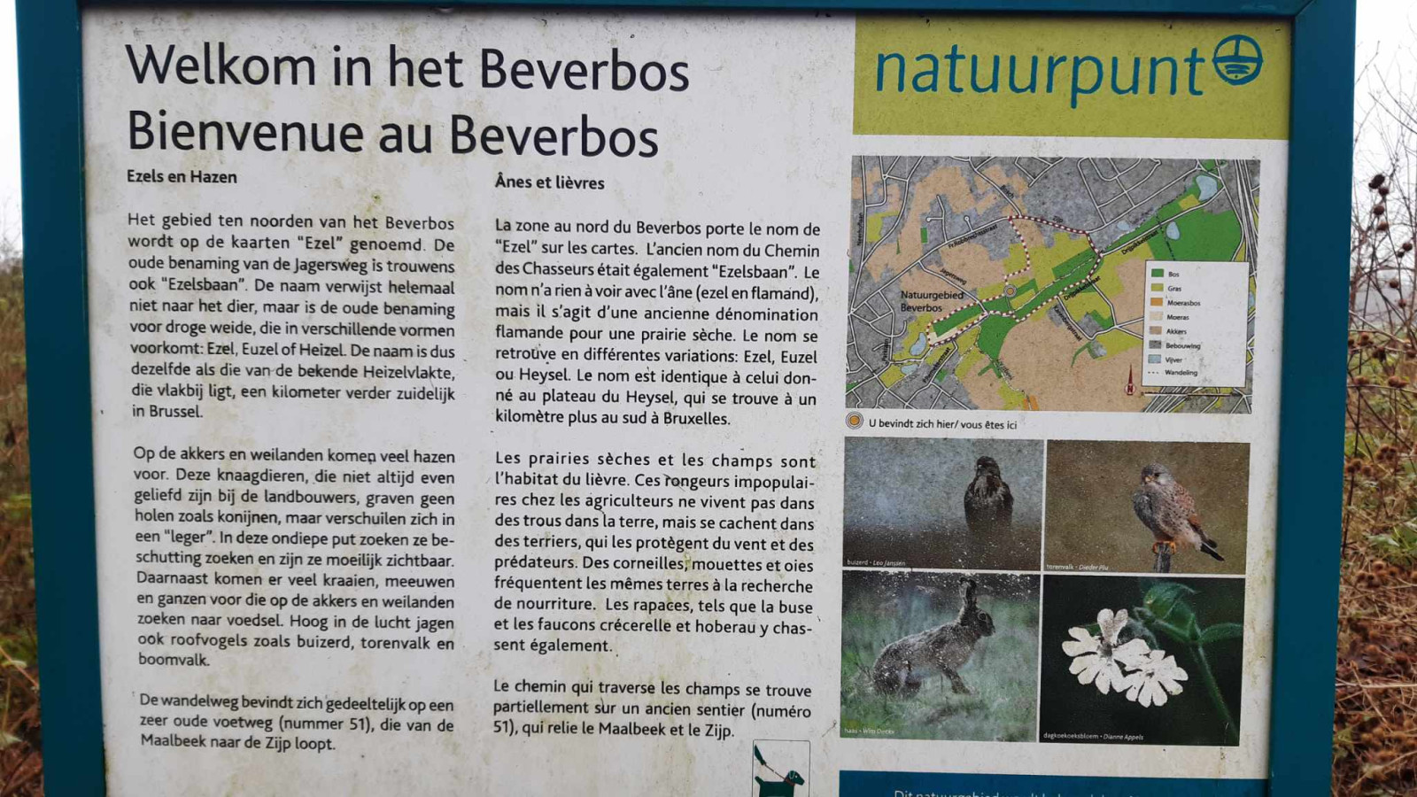 The Beverbos is located near the town of Wemmel. The easiest way to get here is via the Brussels ring road, take exit 9 towards Wemmel, go up Avenue de Limburg Stirum and at the 3rd roundabout, take the 1st right onto Rue J. Vanden Broeck. Parking is easy and free at the end of this street. Press P on the map for directions. It is best to wear good shoes, or even boots, as some sections are very muddy. The circular walking route is approximately 4 km long.