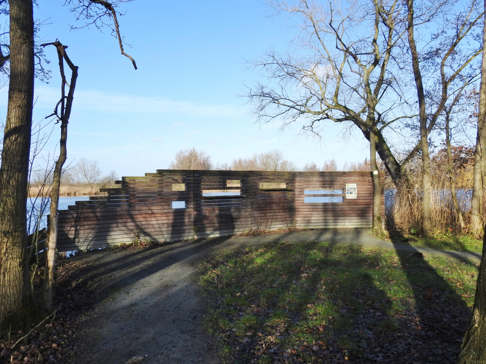 The Donkmeer is one of Flanders biggest lakes of which a large portion of the lake and adjacent meadows are nature reserve. It's an excellent place during the wintering months to spot the mystique Great Bittern. In the center of the lake there is a mixed breeding colony of Grey Heron and Great Cormorant. The Common Tern and Black-headed Gull als breed in the area on natural and artificial breeding islands. Irregular breeding birds are the Little Bittern, Black Kite and Black-crowned Night Heron . From wide reed beds the songs of Cetti's Warbler , Bluethroat and Sedge Warbler can be heard in the spring and early summer. During the spring migration it's an excellent site to spot Osprey and rare migratory terns like Black Tern , White-winged Tern and Whiskered Tern if you are lucky. In the swamps around the lake you have a good chance to see Lesser Spotted Woodpecker , Golden Oriole and Willow Tit . Quite spectacular during winter months (best period is January) are the massive amounts of gulls who come to overnight at the Nieuwdowk. Depending on the wintry weather over 15.000 Black-headed Gull , 2.000 Common Gull and 500 European Herring Gull can be seen.