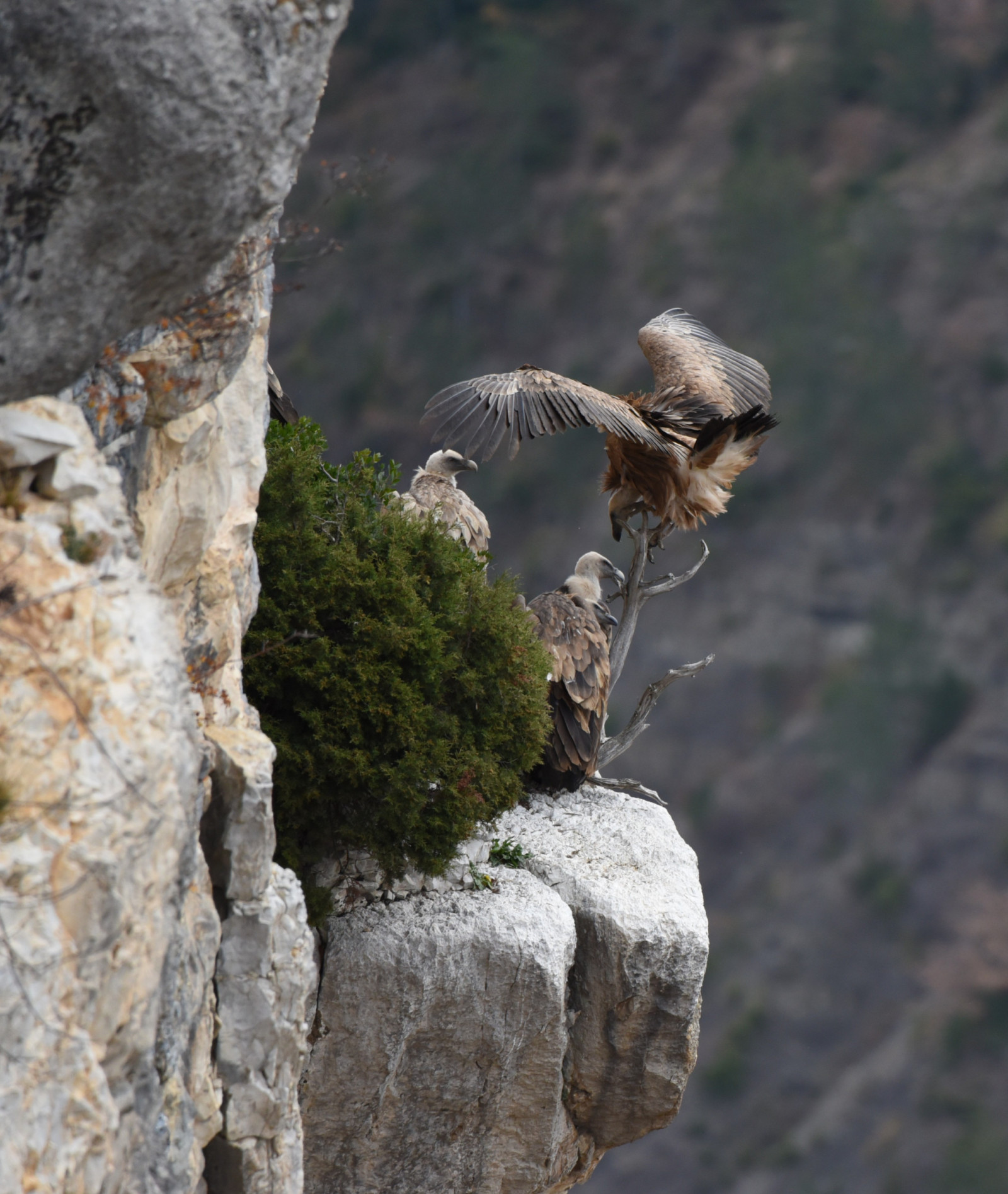The Rocher du Caire above Remuzat is a great place to see vultures up close. These vultures were reintroduced in 1996. The vultures have colonized the cliffs of the Baronnies Provençales. The view is is impressive and in the depth you can see the town of Remuzat. From the viewing point you can see both Griffon Vulture and Eurasian Black Vulture here. And if you are very lucky Bearded Vulture and Egyptian Vulture. But also birds of prey like Short-toed Snake Eagle and Black Kite. And other birds like Common Raven, Crag Martin and Alpine Swift.