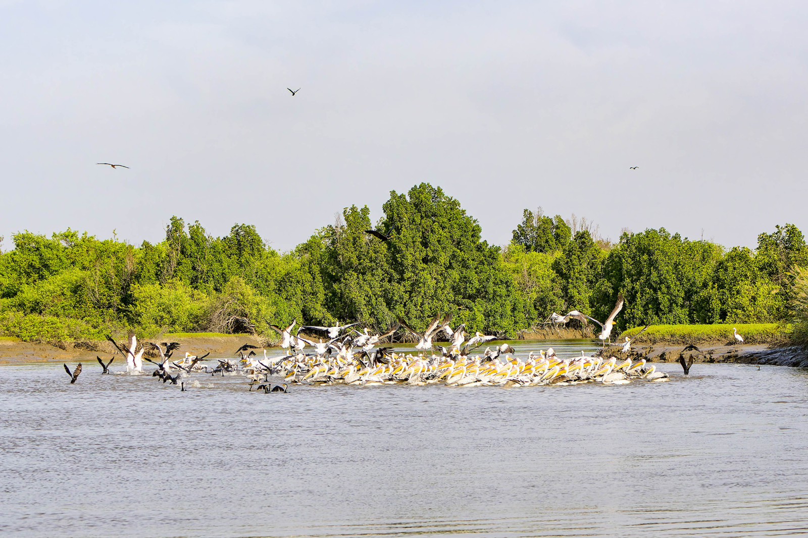 From the camp you need to cross the river to make a beautiful boat trip through the bird-rich mangroves, marshes, reed beds and open flooded fields of Bao Bolong. Among the birds you can observe are Great White Pelican, Pink-backed Pelican, African Fish-eagle, African Finfoot, Woolly-necked Stork, African Darter, White-backed Night Heron, Goliath Heron, Malachite Kingfisher and Mouse-brown Sunbird.