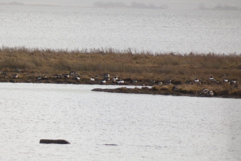 A few hundred meters futher there is an observation tower with a nice view over the partially flooded meadows and small bodies of water. In winter they are getting used as a wintering and migration place for thousands of ducks and geese such as Northern Pintail, Common Goldeneye, Eurasian Wigeon, Gadwall, Common Teal, Garganey, Northern Shoveler, Common Pochard, Tufted Duck, Common Shelduck, Barnacle Goose, Greater White-fronted Goose, Taiga Bean Goose and Whooper Swan. If you are lucky than you can spot a Great Grey Shrike in the bushes.