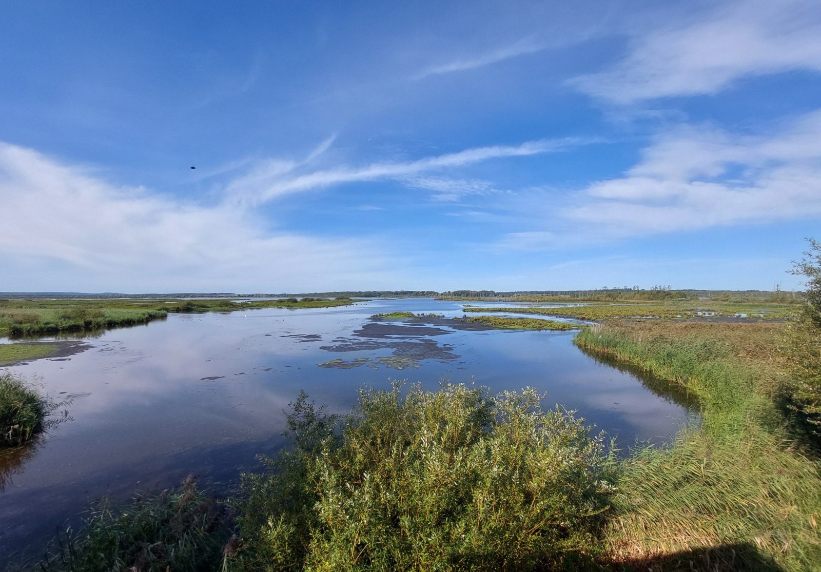 As part of the large-scale nature conservation project "Peenetal / Peene-Haff-Moor", the former polder in the Große Rosin was abandoned and the area was permanently flooded. From the observation tower near restaurant Aalbude and the two observation platforms, which are located at the dam to the Aalbude, you have a wide view over this extensive water landscape. Birds can be observed at any time of the year, but the biggest peak of birds is during autumn migration when thousands of geese and other migratory birds stop here to rest. Great Egret, Northern Shoveler, Common Tern, Red-necked Grebe, Black-necked Grebe, Common Redshank, Ruff, Savi's Warbler and Bearded Tit can be spotted in the shallow water and reed beds. Common Kingfisher whizzes around. Above all this Osprey and White-tailed Eagle circle to look for prey.