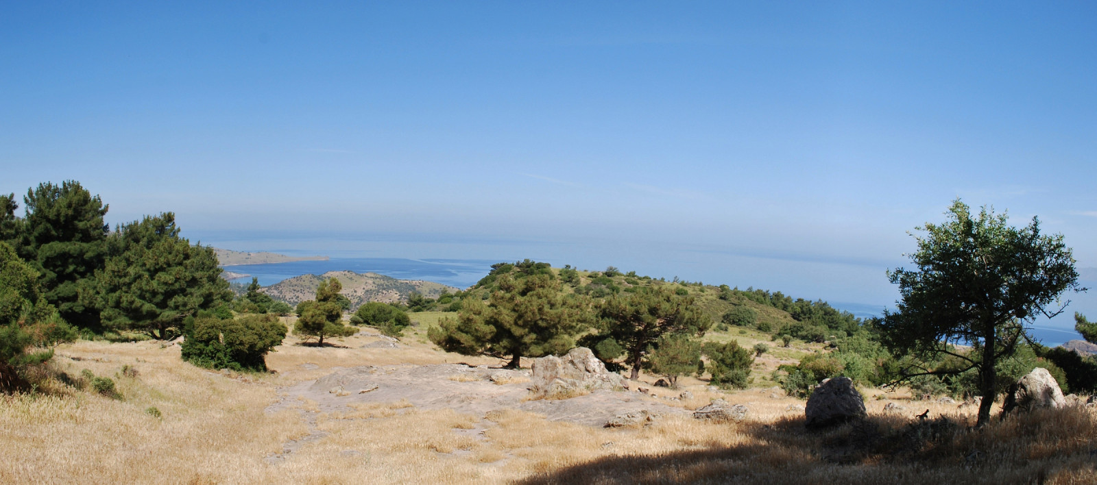 On the top there is a road leading to Lafionas, here the hill is covered with pineforest. In Lefonis follow the NW road towards Petra.