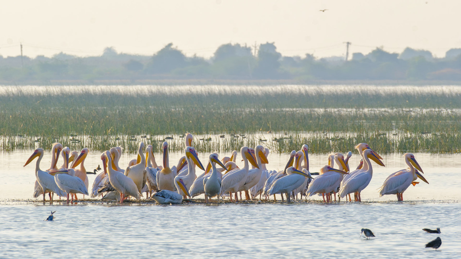 The Little Rann of Kutch (or Little Rann of Kachchh) is a crucial site on the migration route of various avian species and is a paradise for birdwatchers, especially during the winter months. Over 350 species of birds have been recorded in and around the sanctuary. Water birds include large numbers of Greater Flamingo and Lesser Flamingo, Dalmatian Pelican, Great White Pelican, Common Crane, Demoiselle Crane and various species of ducks and waders.