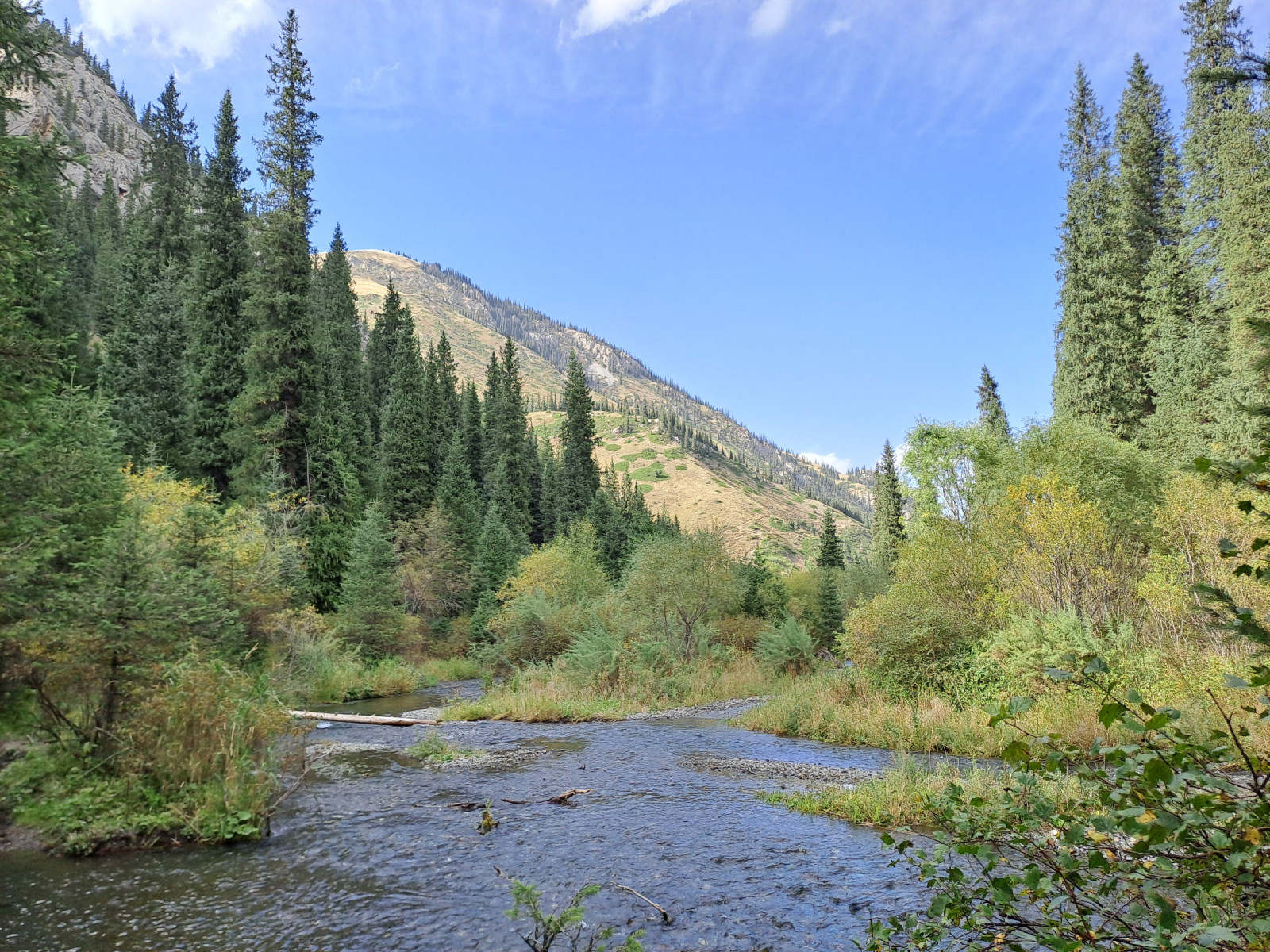 Kolsay belongs to the World Network of Biosphere Reserves and the lakes consist of typical mountain lakes with azure water surrounded mainly by coniferous forests and mountain slopes. The three lakes are connected by the Kolsay River and are located in the foothills of the Tian Shan Mountains. The area consists of several biotopes such as: dense coniferous forest, mixed forest, fast-flowing river, tidal forests, montane meadows, open water and stony mountain slopes.