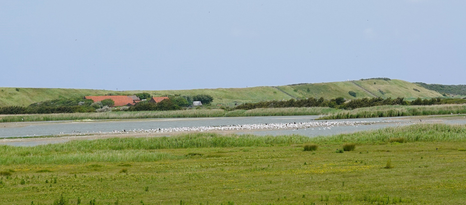 Je kunt het gebied ook mooi in zijn geheel overzien vanaf de zeedijk ter hoogte van de vuurtoren en Vogeltelpost Westkapelle (3). Hier steken tijdens het broedseizoen vaak dwergsterns de dijk over om te gaan foerageren in de branding. Ze vliegen dan soms vlak langs je heen en je kunt ze mooi zien vissen aan zee en weer terugkeren naar hun nesten.