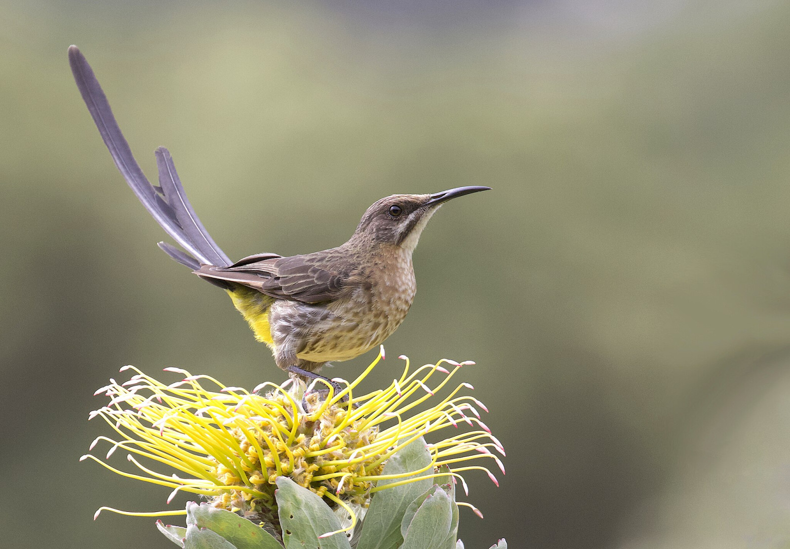 Birds are abundant at Kirstenbosch, particularly in the Garden – more than 125 species have been recorded. Look out for Cape Sugarbird, with its distinctive long tail, Sunbirds like Orange-breasted Sunbird with their colourful plumage and African Dusky Flycatcher which is frequently seen swooping down from the trees to catch flying insects. The resident Spotted Eagle-Owl is often seen near the Dell. Helmeted Guineafowl, Lemon Dove and Cape Spurfowl are a common sight throughout the Garden.