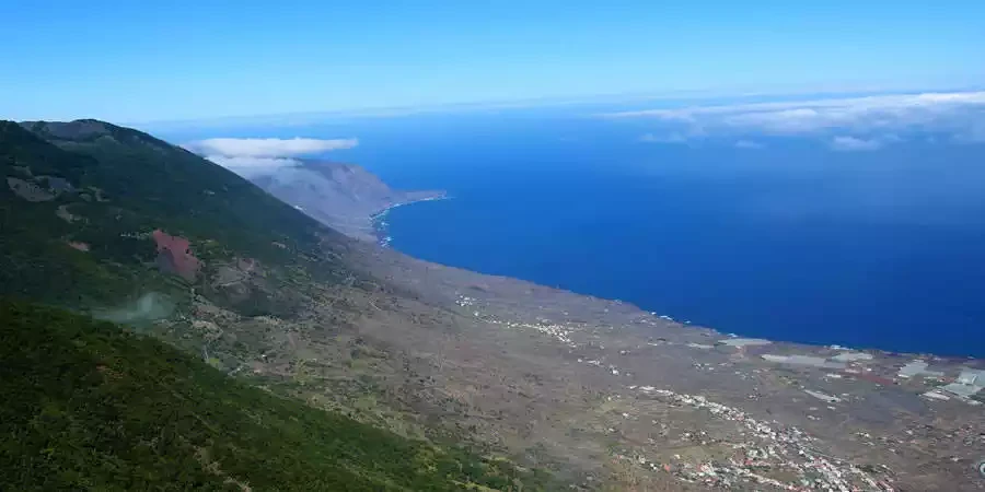 La Llanía can be reached via the HI-1 from the town of Valverde, the island's capital. There is a signposted parking area from which you can access the viewpoint and the trails that crisscross this area. Press P on the map for directions. The circular walking route shown on the map is about 6 km.