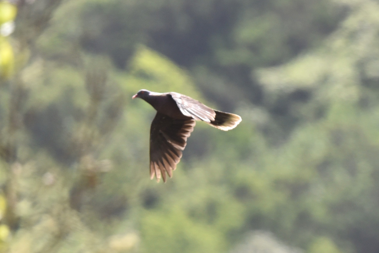 Mirador de La Carbonera is a good place for Laurel Pigeon. You can walk up from Hermigua, but best is to just park near the old bar (only very few possibilities to park, fenced off). Just sit on the former "veranda" of the run-down caffee/bar and watch out for the pigeons flying out of, or into the forest (facing the hill slopes). Sometimes, pigeons can be heard calling or making flight noise during starting off.