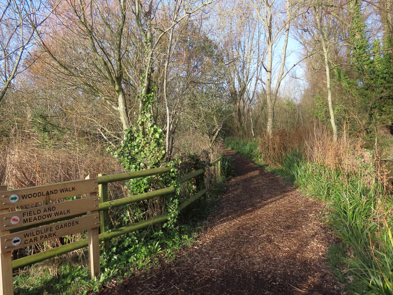 The closeness of the reserve to the town make it an easy visit, the well signed paths meander around the various habitats. Although separated from the river Stour by a fence, a small viewing platform and seat provide a good spot to view the larger area where waders might be on the mud banks or a Common Kingfisher flash by.