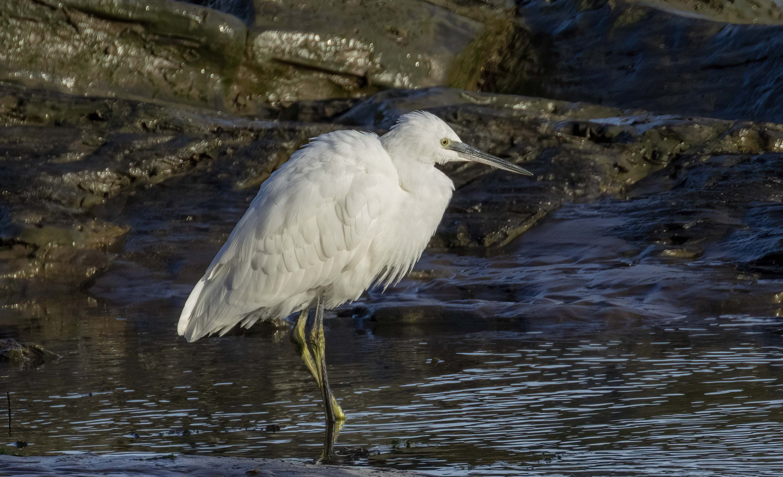 Watchet Beach is rocky and muddy and it attracts birds like Dunlin, Eurasian Oystercatcher, Ruddy Turnstone, and the occasional Eurasian Curlew. The best time is as the tide is retreating. I always go just after high tide. Sometimes you have to wait until tide retreats enough to access the beach, which is stone at the top with rock pools and mud exposed as the tide retreats.