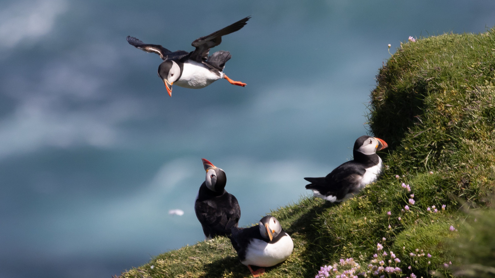 There's a parking place near Burrafirth. It's well signed. From the parking place follow the footpath all the way to the cliff. It takes about 40 minutes to walk. It's a bit hilly. When you get to the cliff edge, walk to the left to see a huge Havsule colony up close. You can walk all the way round. If you go to the right, you can see Muckle Flugga, Britain's most northerly lighthouse. The cliff edge is not fenced, so be careful, especially with strong winds. Also, be careful where you step, as there are quite a few Lunde burrows along the edge. Be aware of dive bombing Storjo (called bonxies in Shetland) in breeding season. Best to stick to the path. Part of the area is closed in breeding season to protect Smålom.