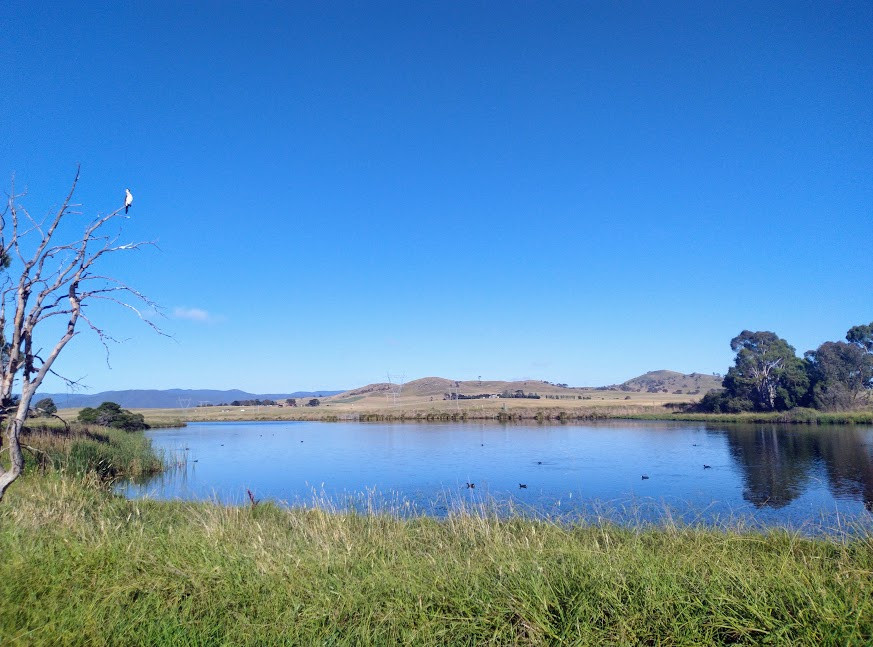West Belconnen Pond is located in North Western Canberra, in the suburb of Dunlop. Press P on the map for directions to the parking. The circular trail around the pond is about 2,5 km.