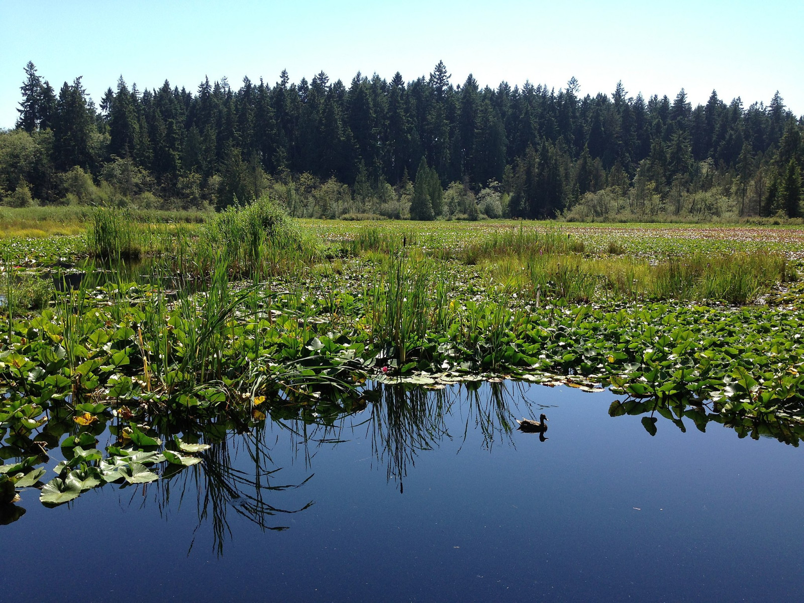 Beaver Lake is located in the middle of Stanley Park in Vancouver. The lake is mainly covered in foliage and is a diverse wetland. There is a large beaver dam that can be seen. The Beaver Lake Trail is a flat, gravel, 1 km trail that goes completely around Beaver Lake. There are several spots along the trail where you can view the lake.