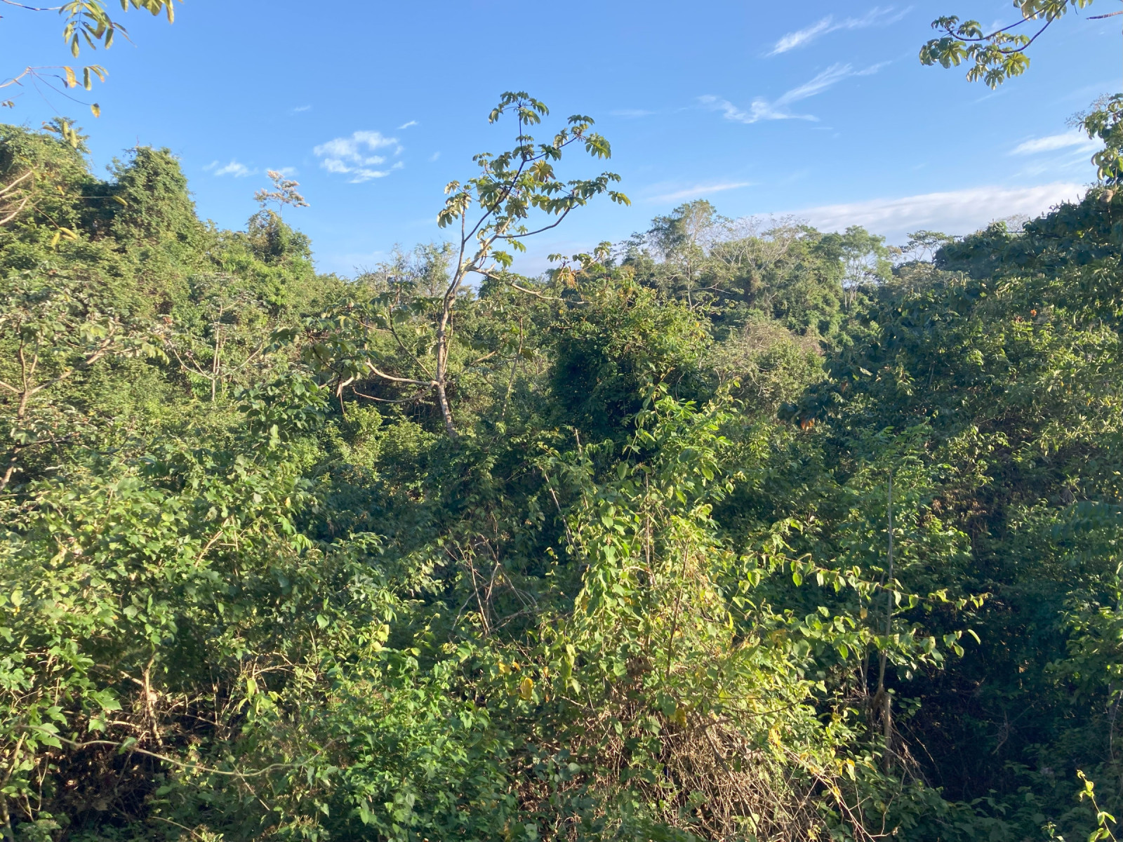 The Howler Monkey Road (not the official name of the road) is located in the hills that rise up behind Santa Teresa. You can walk up from Santa Teresa through Jaguar Street (Calle el Jaguar), this is the shortest way, but note that this is a very steep climb and sometimes the road can be blocked. If you have your own transport the easiest way to get there is to drive up to the beginning of road, although you have to drive quite a bit to get there, because you have to drive around the hills. This is about a 9 km drive from Santa Teresa. Click on the P on the map for directions. You can park your car at the beginning of the road on the side of the road. Along the path you will encounter a fence (see 1 on the map) that you can easily climb over from the side. The road then enters private property, but it is allowed to walk there.