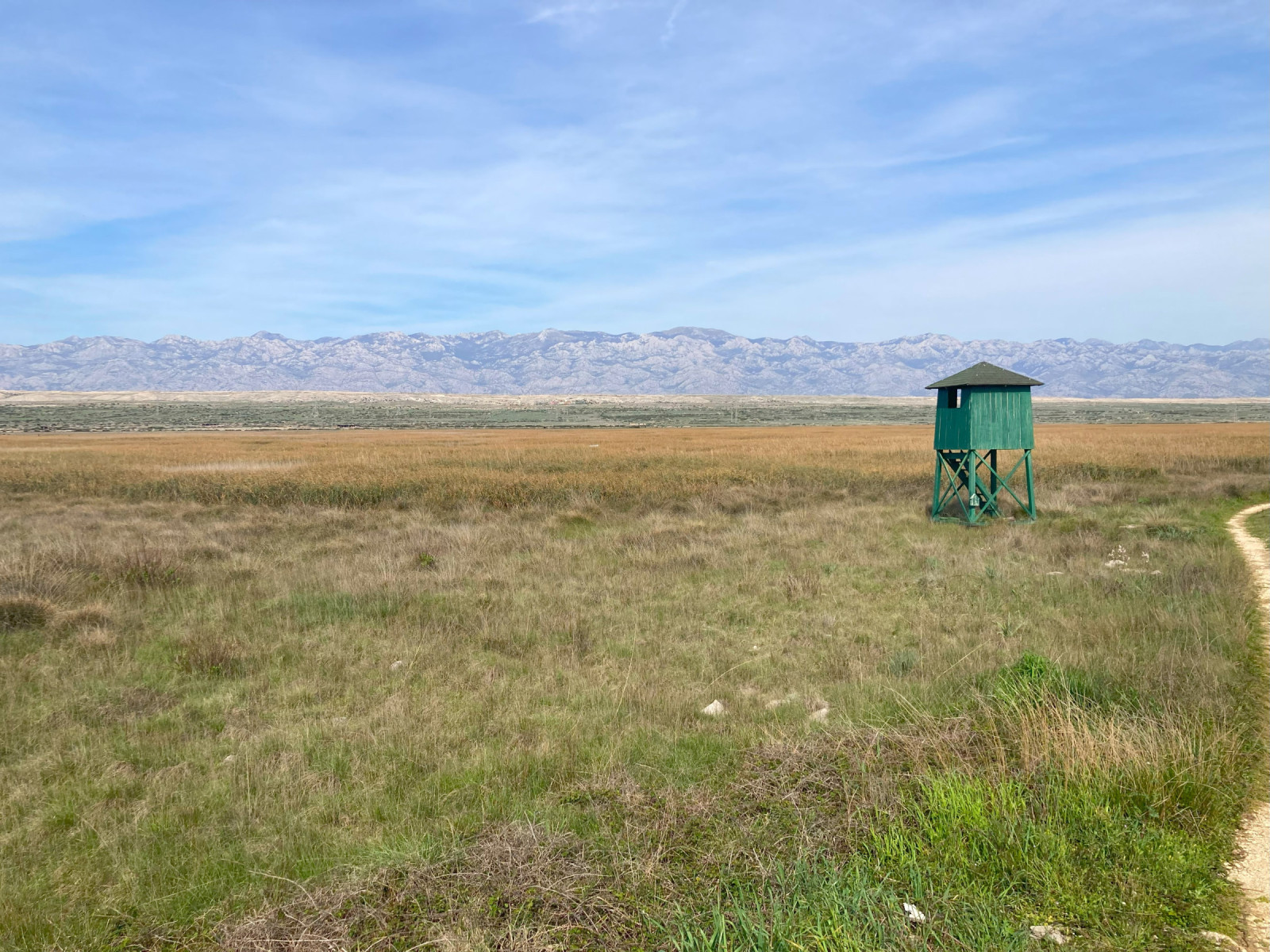 Malo Blato nature reserve is located 10 km east from Pag Town. Turn off the main road between Pag and Povljana, and park at the side of the road. Click on a P in the map for directions to the small parking spot next to the bird observation tower.