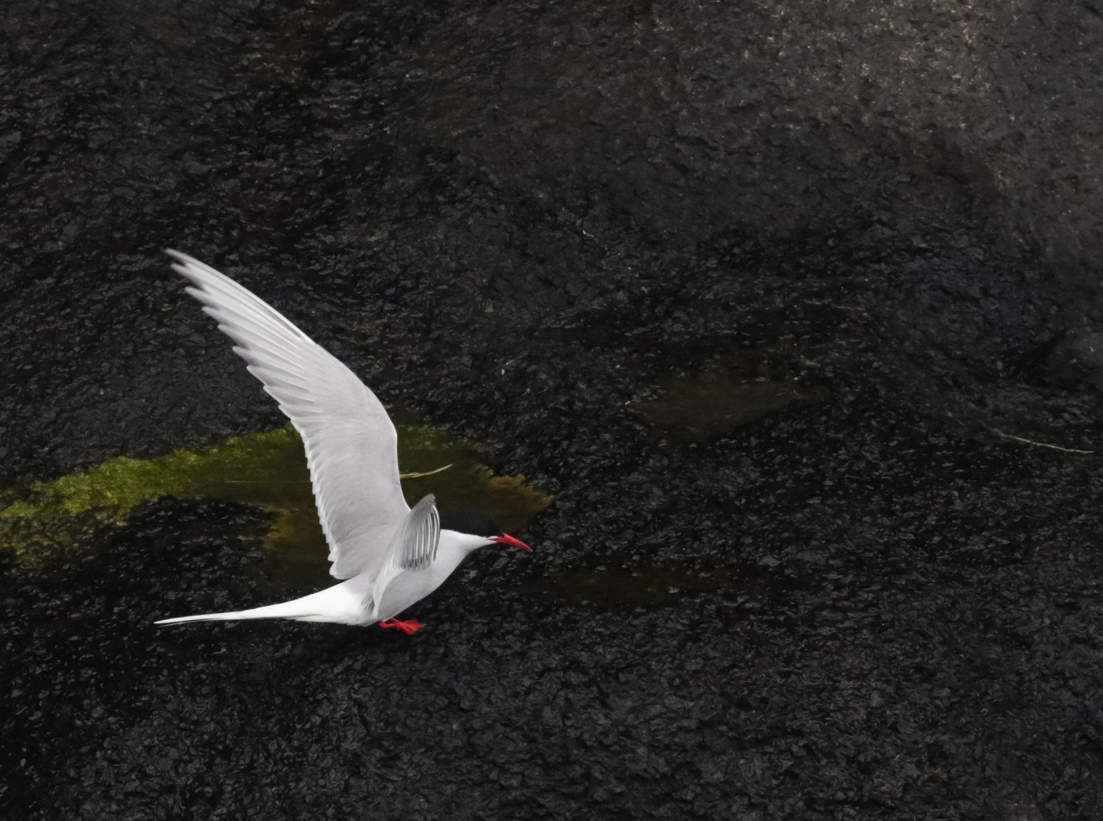 Gjógv is a tiny fishing village on the northeast tip of Eysturoy, famous for its 200‑meter sea gorge that serves as a natural harbor. You can choose to hike up north of the gorge. You'll then arrive at the top of the gorge. If you hike south of the gorge all the way to the end, you'll find yourself looking at a rock face. You can sit comfortably on the ground and photograph papuchalk severnís flying by. From above, you'll also have a view of the birds that frequent the gorge, such as alkoun obecný, linduška skalní and rybák dlouhoocasý.