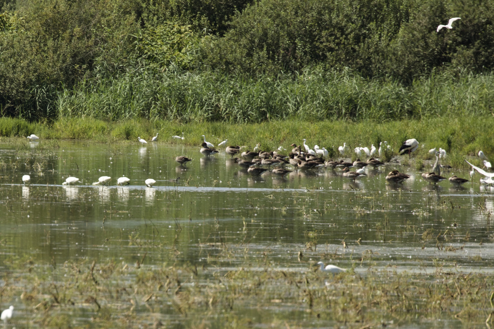 Étang Turlet is located at the southern exit of the town of Villars-les-Dombes. The lake has mainly open shallow water with some scarce reedbeds and wet woodlands. On the northern bank of the lake is a bird hide. Among the bird you can observe are konopnica, žvižgavka, dolgorepa raca, tatarska žvižgavka, čopasta črnica, sivka, kreheljc, reglja, labod grbec, rjava čaplja, bela štorklja, rjavi lunj, belolična čigra, čopasti ponirek, mali ponirek and črnovrati ponirek.