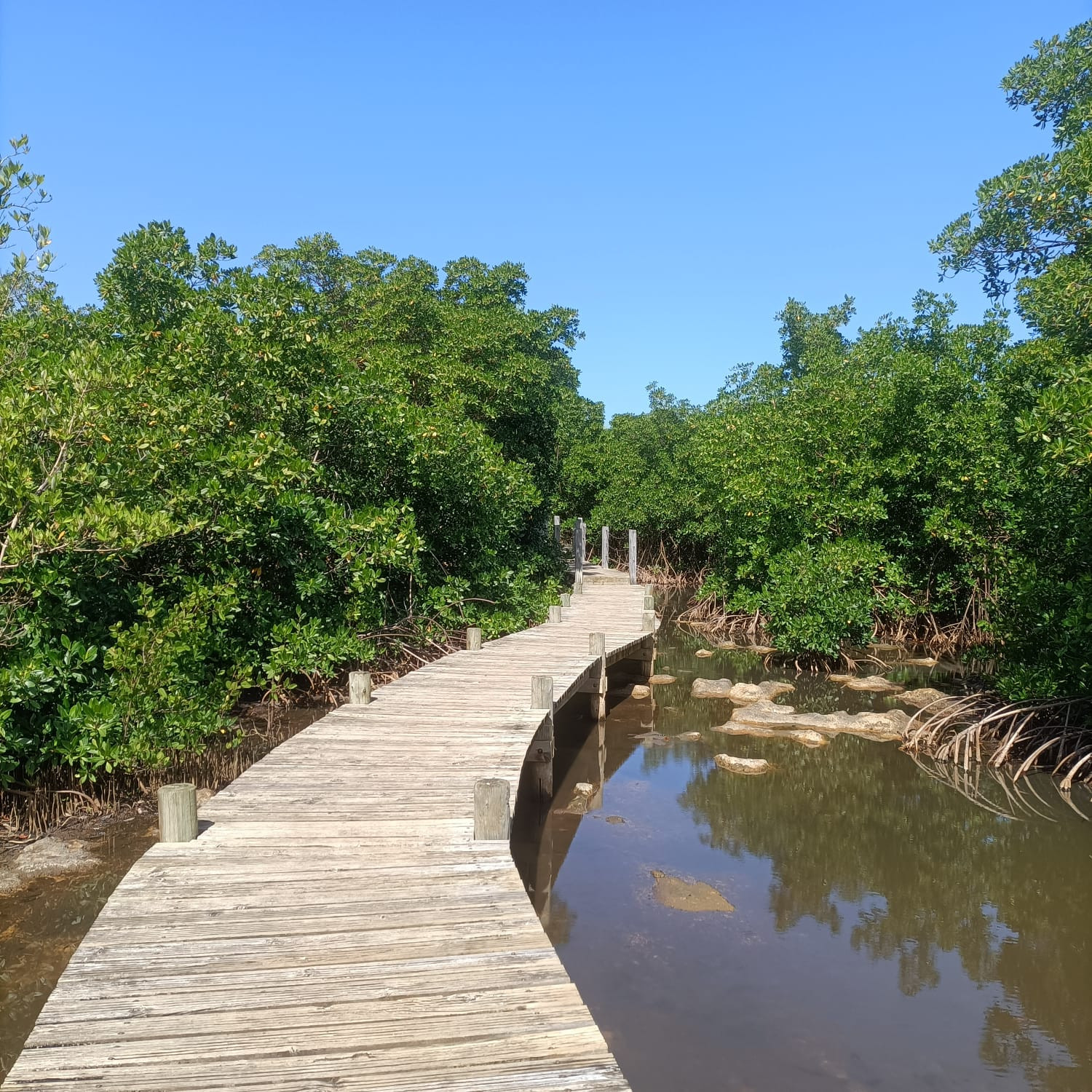 You can get to the area from the Port-Louis cemetery parking lot. Click on the P in the map for directions to the parking. A sign indicates the start of the trail. You can only explore the trail on foot. Although raised pontoons allow you to cross the wettest areas (mangrove), some passages along the edge of the salt flats can be muddy. The trail is short but it can be extended north towards Anse Bertrand.