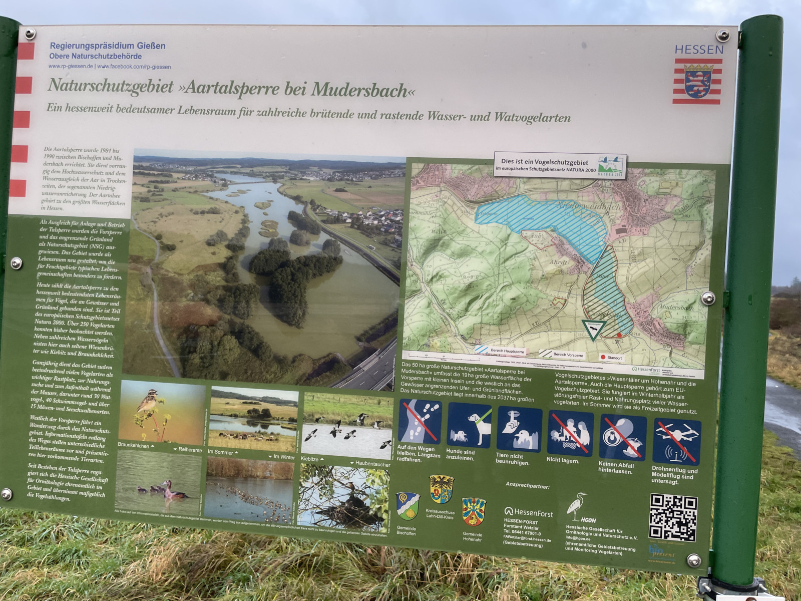 Since the Aartalsperre in the Gladenbacher Bergland is the only large body of water far and wide, it also attracts migrants that fly over there almost magnetically. So it is no wonder to see gulls or terns and, of course, resting waders and ducks as well as divers and kršiak rybár here during migration. The 50 hectare dam area is divided into numerous islands of different heights. The edges are mostly covered with rushes. Large parts are grazed by free-range herds of cattle. pŕhľaviar červenkastý and pŕhľaviar čiernohlavý sit on the fences and strnádka trstinová sing in the reed beds. Among the other birds you can see here are škovránok poľný, ľabtuška lúčna, strakoš obyčajný, potápač veľký and beluša veľká.