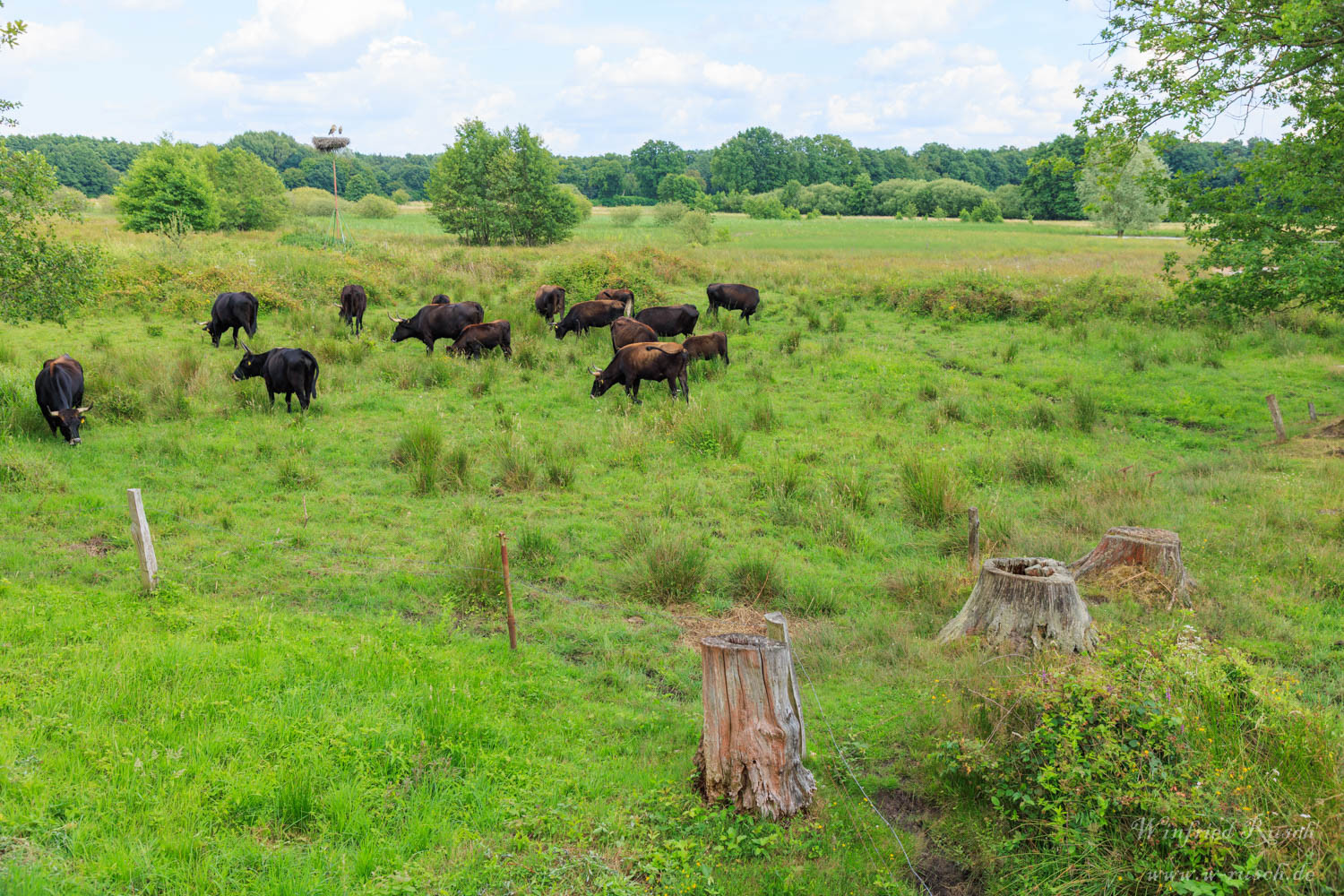 Between the Gälkenheide, the Wulfener Heide and the Lange Heide stretches the Hervester Bruch. The nature reserve is freely accessible at all times. To get there take the A52 from Essen to exit 45 Dorsten-Ost and continue on the L608. From Marl to exit 46 Marl-Frentrop and turn right onto Dorstener Straße, then after 1 km turn left onto the L608 towards Wulfen. Click on the P in the map for directions. There is limited parking available on the edge of the nature reserve. On sunny weekends during the breeding season, these places can be quickly occupied. You can make a circular walk of about 5.5 kilometers in length (a shortcut in the middle is possible).