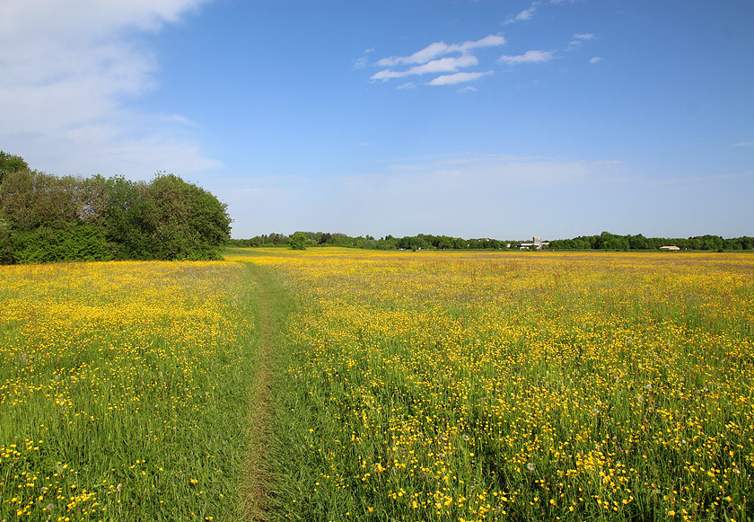The Landschaftspark Hachinger Tal is a 150 hectares area in the south of Munich that is part of the Munich gravel plain. It contains the rest of a heath area and was used as a military airfield from 1933 to 1997, with the runway still existing. From March on, you hear the sound of singing Mezei pacsirta from the meadows, in May/June also sometimes Fürj. There are protected areas for meadow breeders, see local signs. In spring there are birdsongs from Citromsármány and Erdei szürkebegy in the bushes, while in May/June you find Tövisszúró gébics and singing Kerti poszáta, Kerti geze and Énekes nádiposzáta.