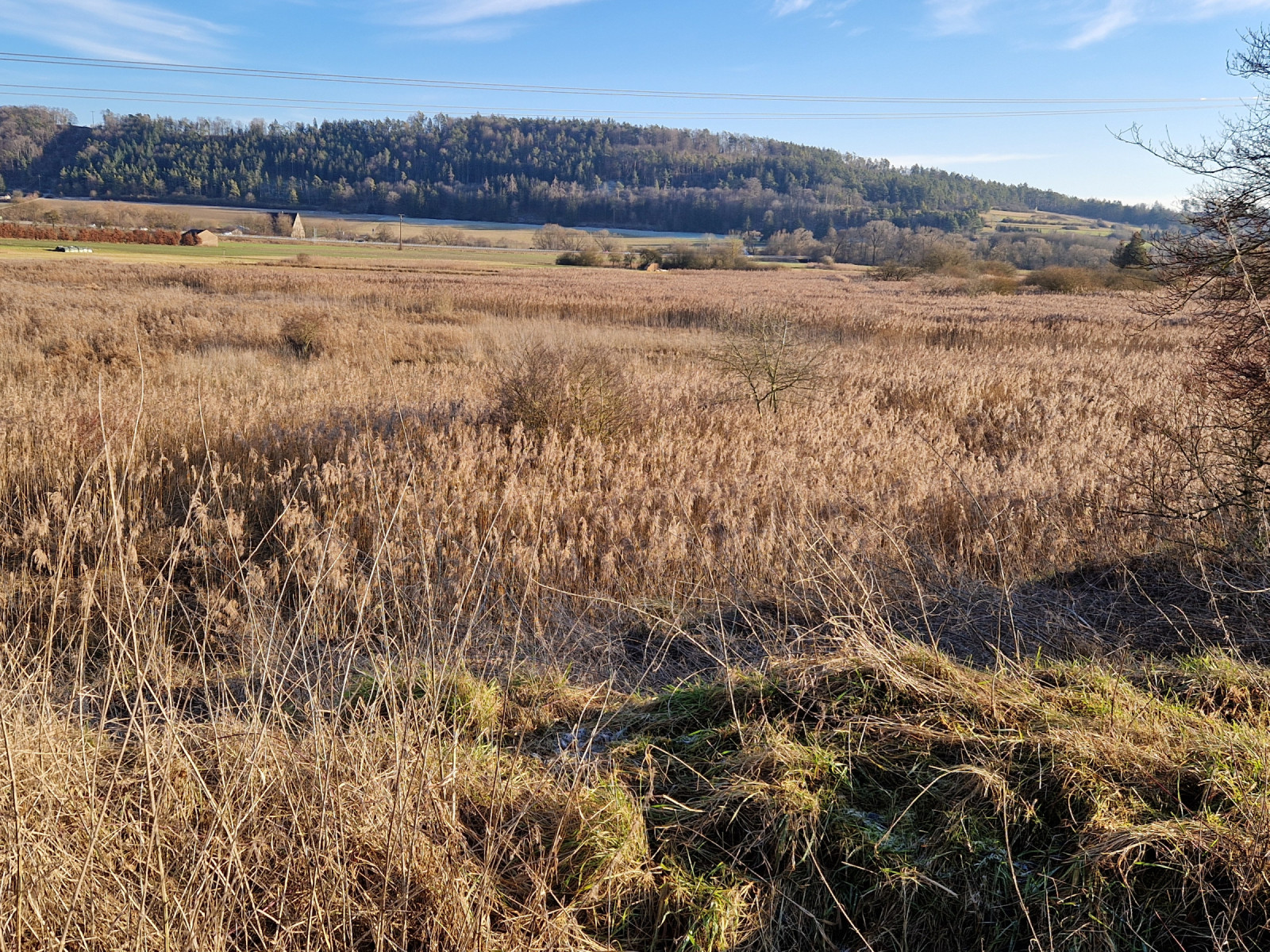 The Schambachried in the Franconian Jura is the oldest nature reserve in Middle Franconia. This calcareous fen was traditionally used as a litter meadow, meaning it was managed without fertilizer input; as a result, the landscape is particularly valuable for rare plants. The seven-hectare area consists of a litter meadow in the center, which is mown once a year (1), wet meadows (2), extensive reed beds (3), and canals used by beavers. Ornithologically, the area is not frequently visited but probably deserves more attention.