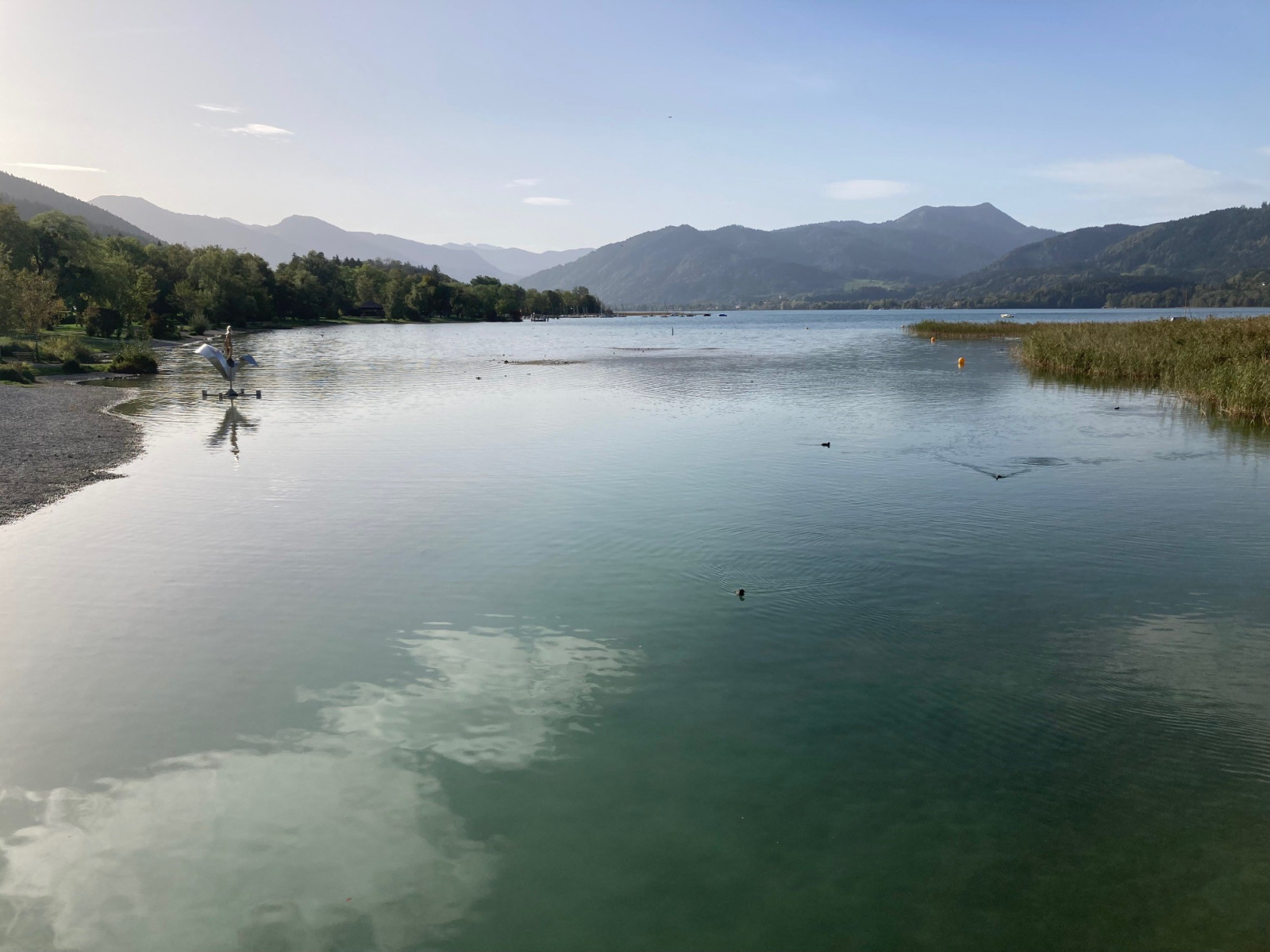 The Tegernsee, located in Upper Bavaria, is a clear alpine lake surrounded by hills and forests, offering excellent birding opportunities. At its northern end in Gmund, the Mangfall River begins its flow. The well-maintained, barrier-free lakeside facilities provide easy access to birding spots, including a wooden bridge connecting both sides of the river and lake.