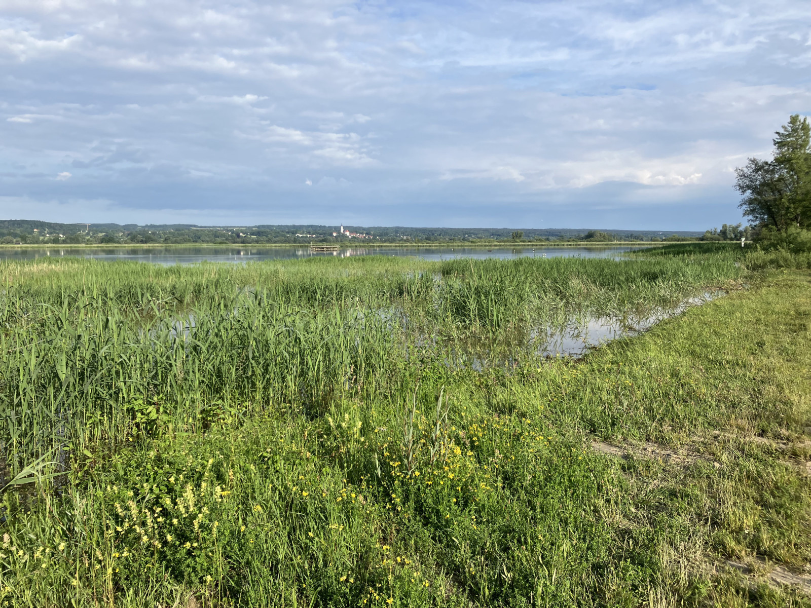 Vogelfreistätte Ammersee-Südufer (the southern Ammersee bay) is a nature reserve that offers a broad variety of habitats. The open water, reedbelts, sandbanks, alluvial forests als well as the open meadow landscape closeby attract lots of different bird species. Providing the opportunity for exciting spottings all year round. Around 110 species nest in the area, including Sílaþerna, Vepja and Vallskvetta. During spring and autumn many migrating bird species rest here, such as Rúkragi, Flóastelkur or Háleggur. Sometimes also rarities can be spotted. In winter lots of waterfowl gathers in the area. In total over 320 different species have been observed here. The meadows south of the lake "Raistinger Wiesen" are also a great birding area. Note: some paths are closed during the breeding season.