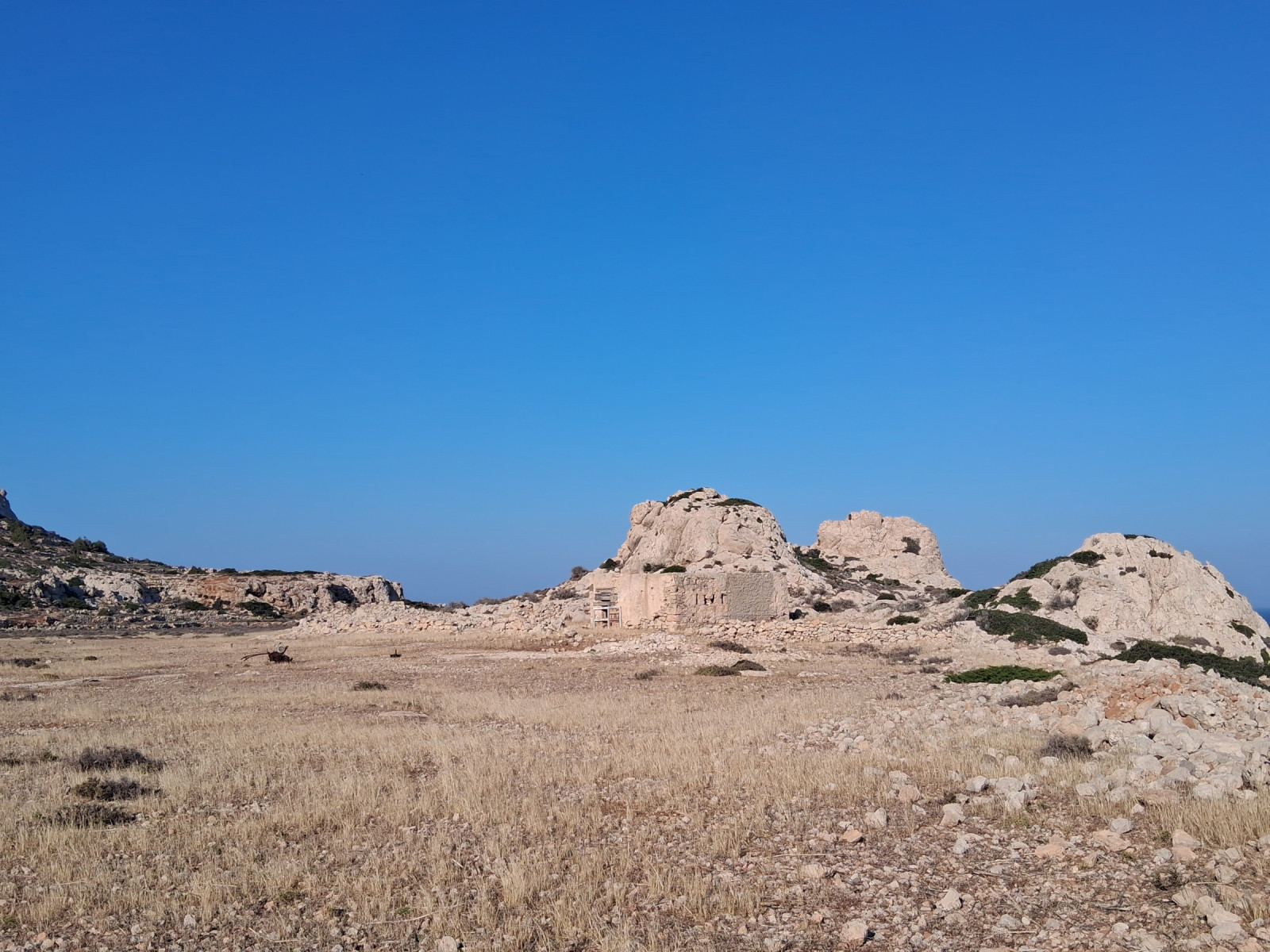 Walking south from Lefkos along the Poatli beach you will find a small trail where the road ends at the left of the last house. (The dog outside seemed friendly and was on a leash when I visited.) Follow the trail upwards and you will find a small meadow with a ruin, here look out for Blådrossel. On the other side of the ruins follow the goat trail along the coastline around the ridge. The path can be a bit winding and rough to walk so watch your steps. In the shrubs there will be plenty of Sorthovedet Sanger and higher up on the south side of the ridge Toplærke and Hedelærke.