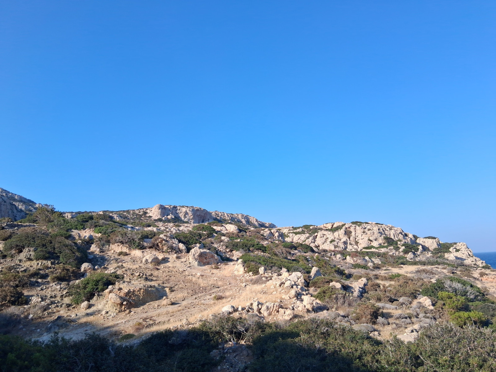 It's a rather rough walk and good shoes are needed. The goat trail will sooner or later disappear but it worked quite well to continue off road. Further up the terrain becomes tougher, and the walk harder, especially on the way down.