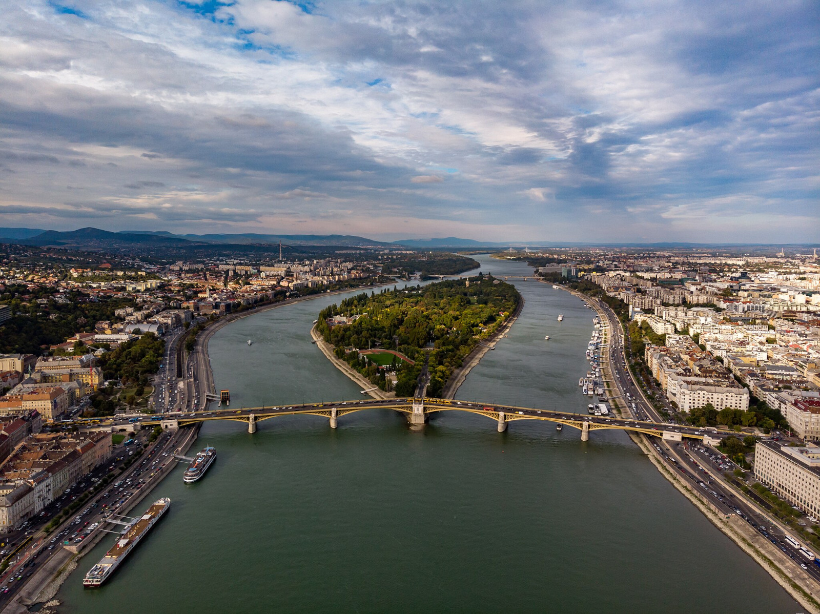 Margaret Island (Margitsziget) is a 2.8 km long and 500 m wide island in the middle of the river Danube in central Budapest. Its 96.5 hectares area is mostly covered by landscape parks, and is a popular recreational area. The island's attractions include walkways, medieval ruins, a small zoo, a fountain, a water tower, swimming pools, and a lido. Thanks to the old woods, parks, and the river Danube, many birds live or feed on the island.