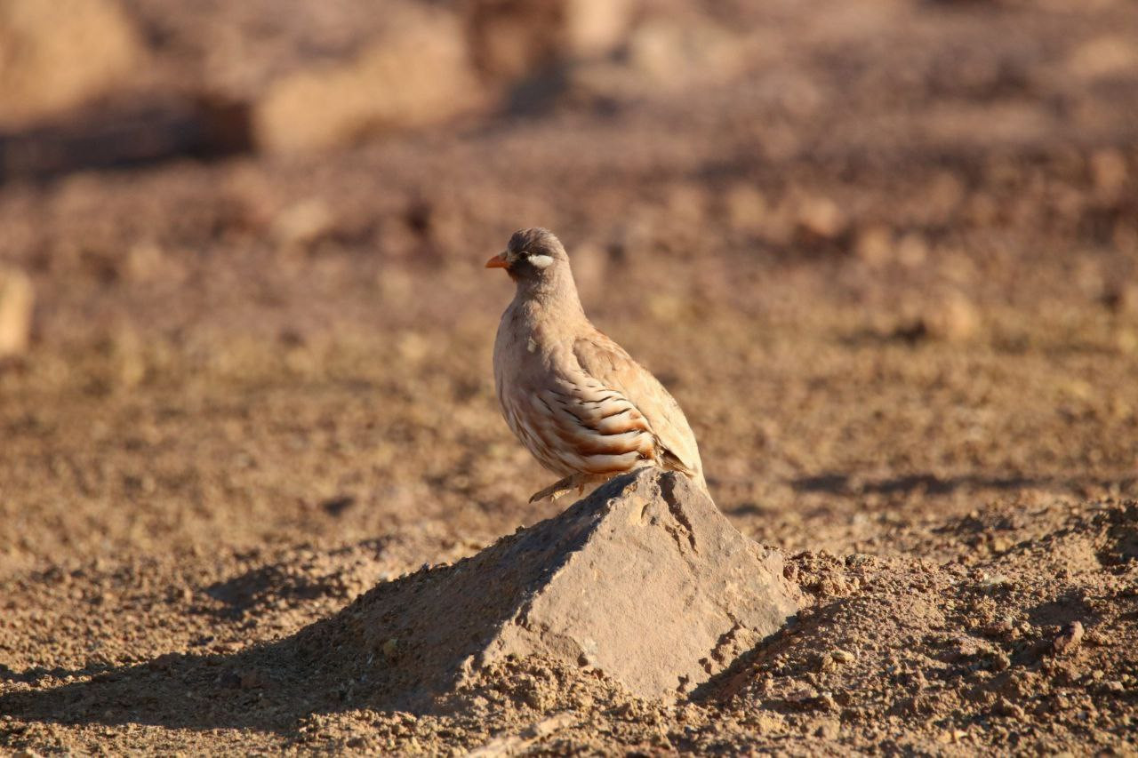 Species you may encounter are: Araberskriketrost, Ravinespurv, Ørkenrosenfink, Lysbuksandhøne, Svartnebbfink, Trompeterfink, Beryllbieter, Hvitkronesteinskvett, Scrub Warbler, Palestinasolfugl, Beduinhøne, Desert Lark, Sørgesteinskvett, Munkesteinskvett and more.