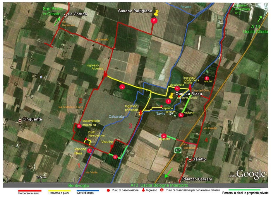 The Ex Rice Paddy of Bentivoglio is equipped has paths to allow the visit of the main natural environments without disturbing the animal species they host. These paths are shielded in the most exposed passages and have a set of closed observation points (huts) that overlook the large wet area. Access is free, from sunrise to sunset, on foot or by bicycle following the indications on the tables. present.