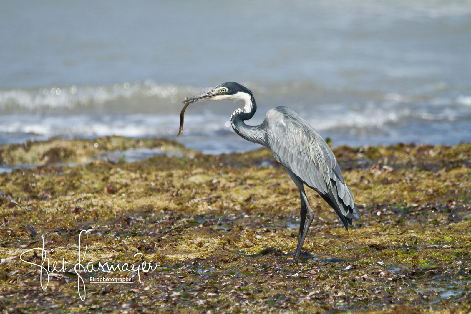 The coastline itself is great for waders, gulls and herons. Twice a day at low tide, the sea retreats far, leaving the rocky subsoil dry. This acts as a magnet for the birds that come to forage and rest. With rising water, the birds come closer and closer to the beach, which offers good photo opportunities. Common species are Grey Plover , Tibetan Sand Plover, Common Ringed Plover, Sanderling , Curlew Sandpiper, Common Greenshank, Sooty Gull and Lesser Crested Tern. Often singular or pairs, Woolly-necked Stork, Black-headed Heron, Western Reef Egret, Medium Egret and Little Egret forage near the shoreline for fish. The Pied Kingfisher often sits on the rocks and with a bit of luck an Osprey will fly by.
