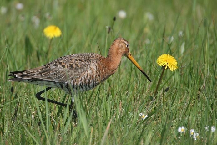 The Meilanden is located on the east side of highway A50. Due to its proximity to the river Linge, this wet meadow area is an excellent stopping place, especially for the first returning rycyk and krwawodziób after their long journey from Africa. When the birds have regained strength, most pairs will populate the surrounding area to breed. Others move further north. In 2020, there were about 40 pairs of rycyk and 25 pairs of krwawodziób in the Meilanden, making this area an important one for the meadow birds in the region.