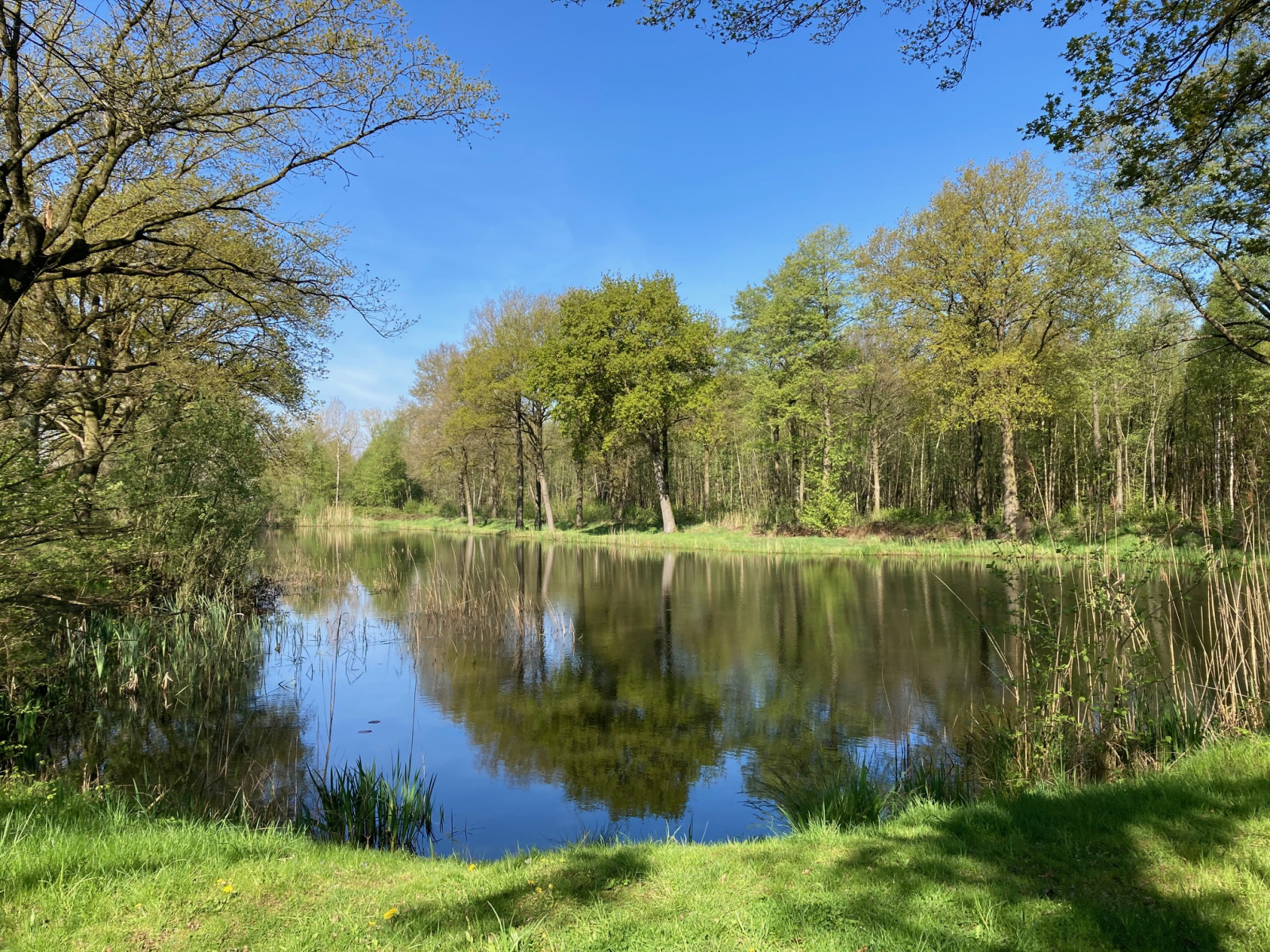 A nice walk of 4.5 kilometers (see the map) takes you through the entire area. There are two parking places. Click on a P in the map to go to the parking space of your choice.