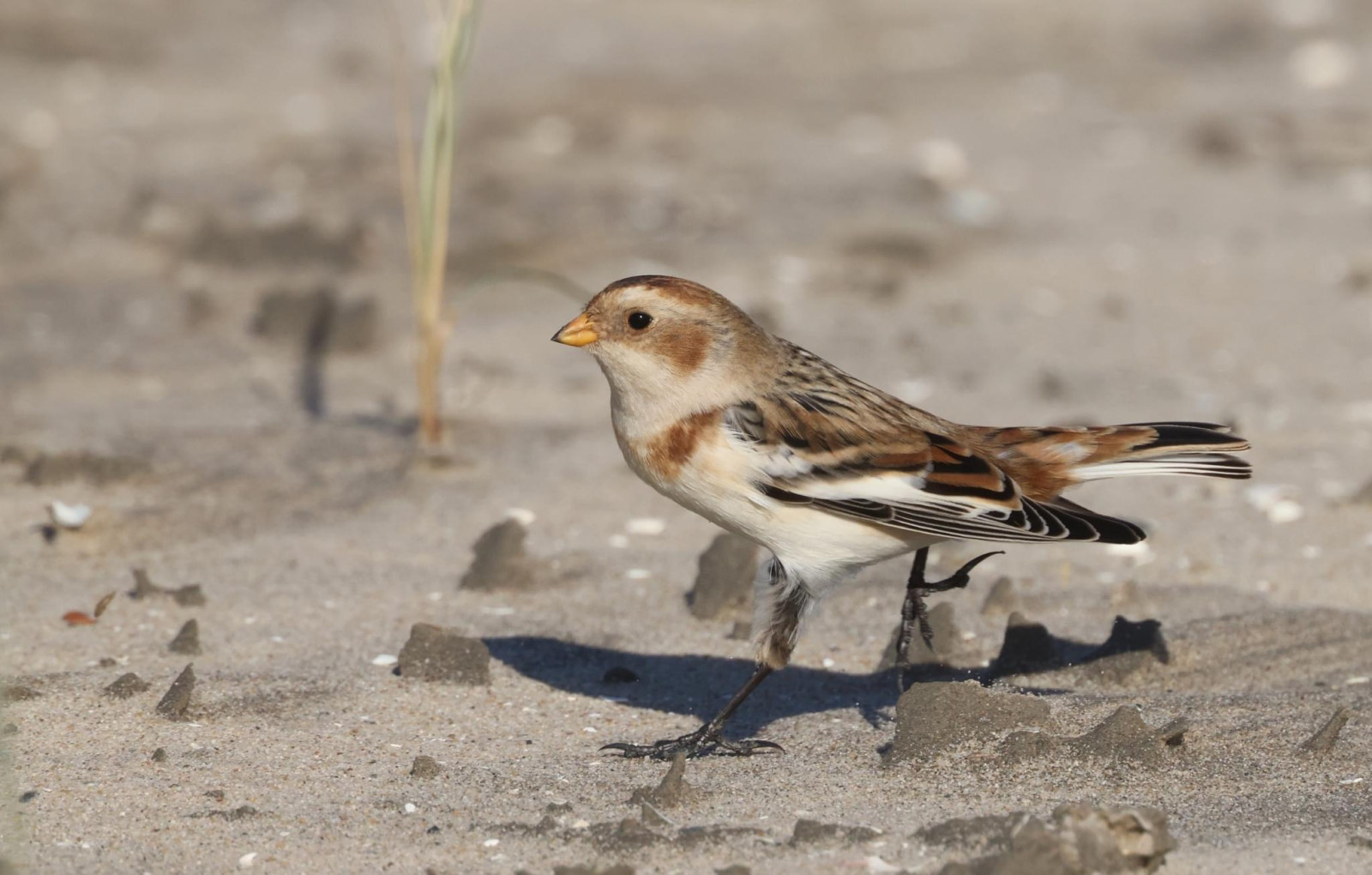 The Zandmotor is a quiet, wide beach with the shape of a peninsula, creating two inland water pools that form a resting area for various birds, especially during bird migration. Waterfowl such as Lille Kobbersneppe all sorts of plovers such as Stor Præstekrave and sandpipers such as Almindelig Ryle, Sandløber, Dværgryle and of course many species of seagulls, reside in and around the two inland pools. Smaller birds such as Snespurv, Engpiber, Tornirisk, Vestlig Sortstrubet Bynkefugl, etc. can be observed on the wide beach and in the dune vegetation.