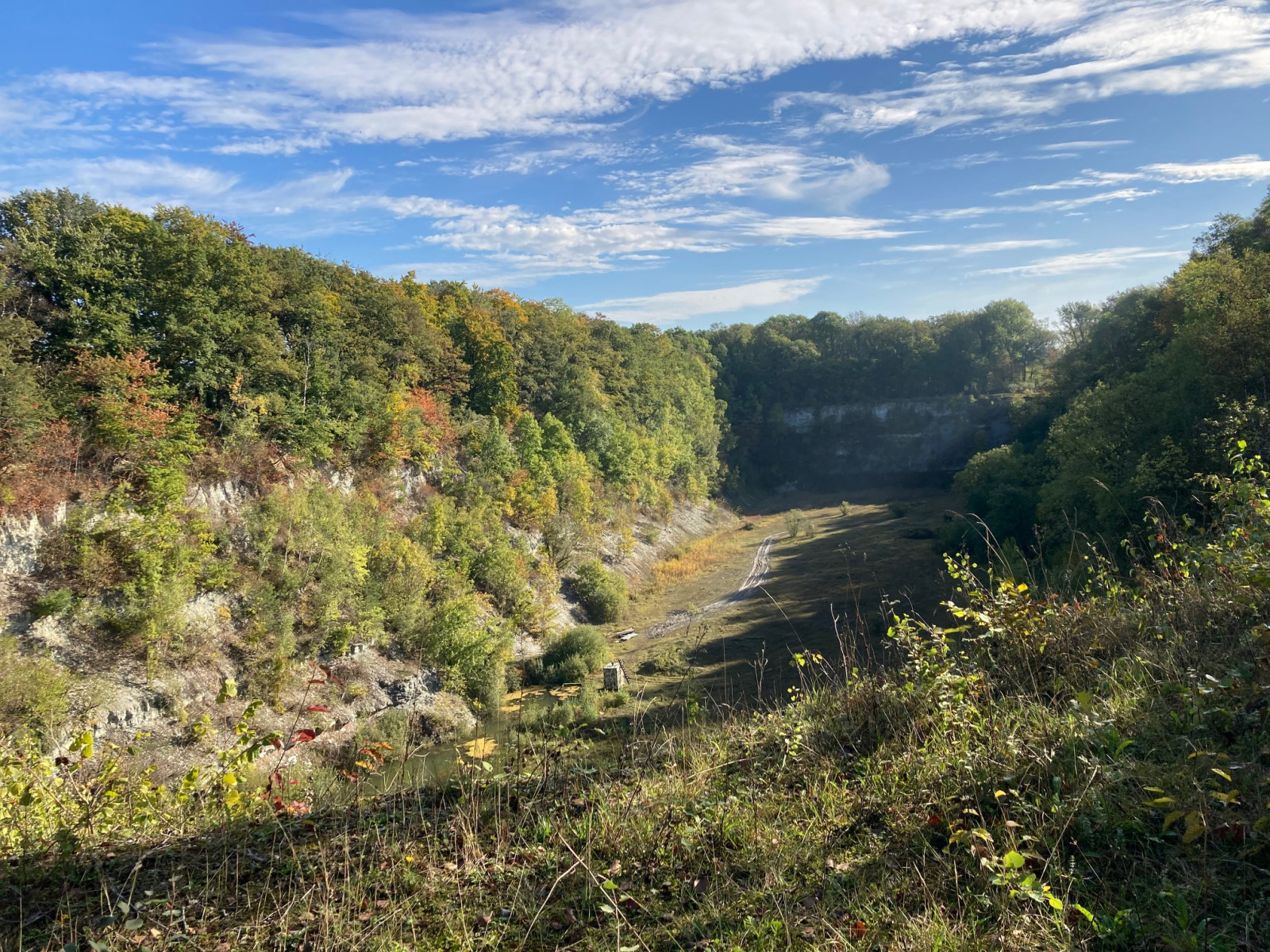 The Winterswijk Quarry is an active quarry located east of Winterswijk and is mined for (mainly) limestone. The area is famous for its fossil findings, like bones and fossilized tracks of multiple species of extinct reptiles, called Nothosaurs. The oldest part of the quarry has been given back to nature and is home to a breeding pair of Gufo reale. An observation screen has been placed near the old quarry to observe the nesting Gufo reale. They breed on a small ledge on the northwestern part of the quarry wall.