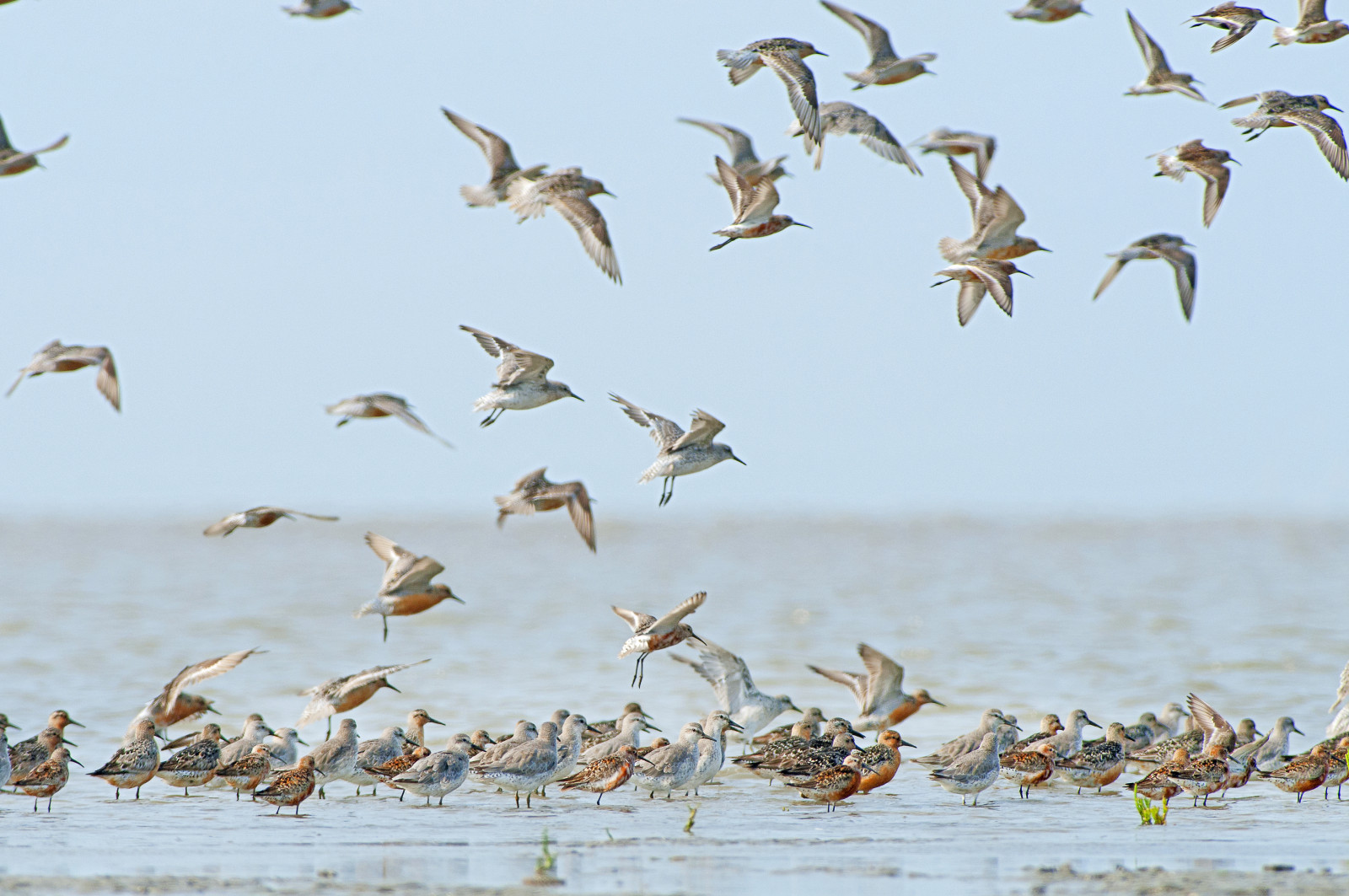 The birds live here at the rhythm of the tide. At low tide they forage on the mudflats. If the water is at the lowest, the birds can be very far away. That is why rising tide is often the best time to watch birds at the Posthuiswad. The birds are then driven closer and closer to the coast by the rising water. See the link to the tidal table below.