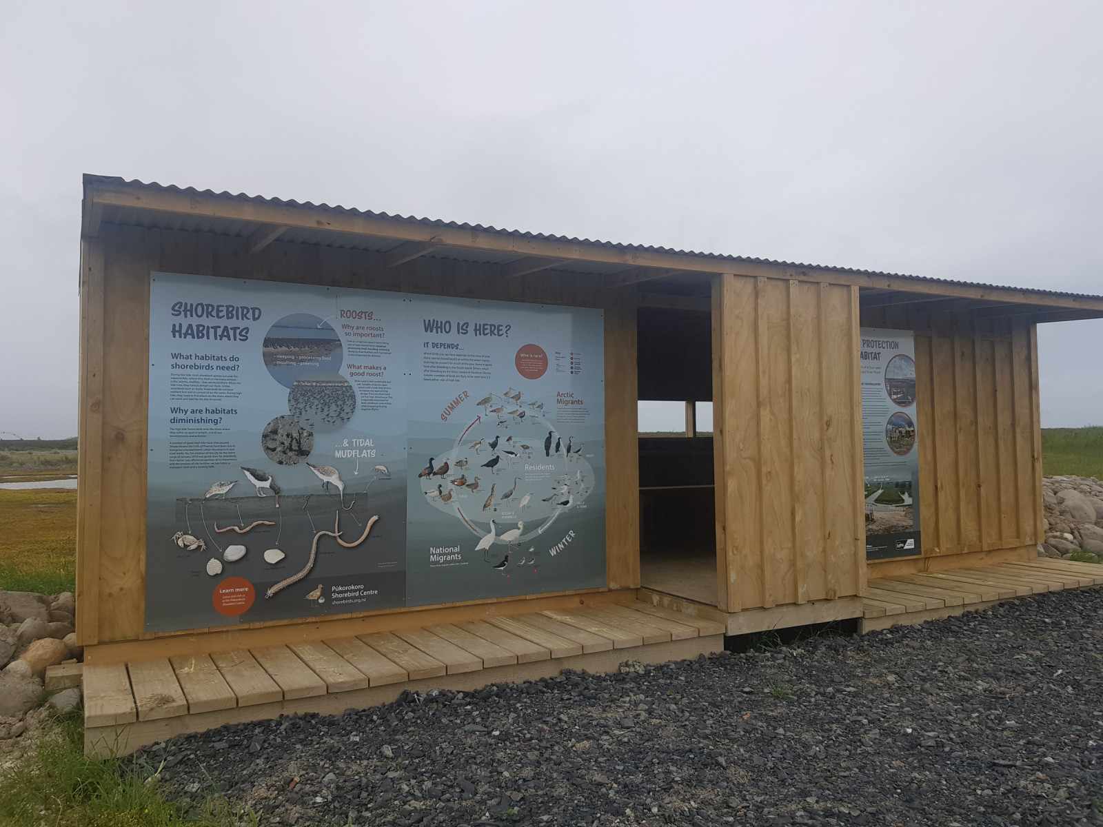 In addition to Pūkorokoro Miranda, the wader roost at the Piako River is a key site for shorebirds in the Firth of Thames. Both locations can be visited easily in a single trip during one high tide. Alongside large flocks of Bar-tailed Godwit and Red Knot, the site often supports less common species such as Sharp-tailed Sandpiper and occasional rarities such as Black-tailed Godwit. In past years it has also been home to Glossy Ibis, being company to the Royal Spoonbill. The ponds often attract marsh terns too, including Australian Tern and Whiskered Tern. Furthermore, there are often large numbers of ducks, herons, and shags present.